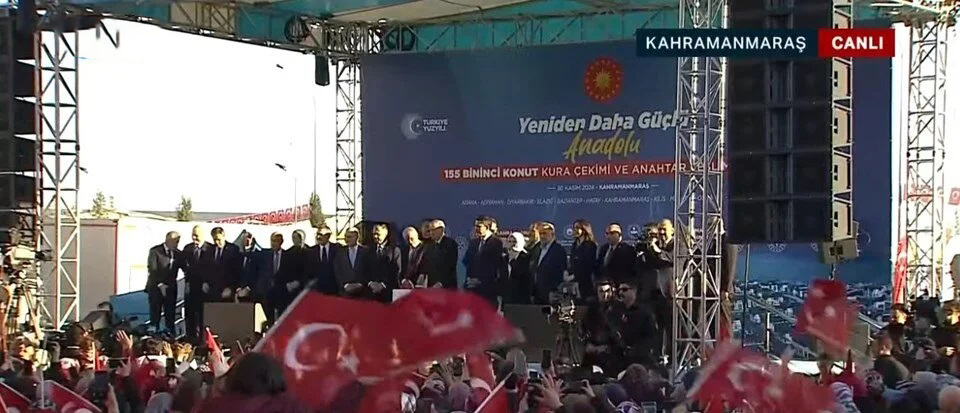 Şehre 1000 yataklı şehir hastanesi ve yeni stadyum yapılacağını duyuran Erdoğan;Kahramanmaraş’ta 155.000 Konut Anahtar Teslimi ve Kura Çekimi Töreni’nde açıklamalarda bulunan Cumhurbaşkanı Erdoğan, 'Ocak itibariyle Kahramanmaraş şehir hastanesinin ihale sürecini başlatacağız.' dedi.Şehrimizi eskisinden daha güzel, daha dayanıklı hale getirmeyi amaçlıyoruz. O günden bugüne dek bir an olsun elimizi deprem bölgesinden çekmedik. Büyük seferberlikte yeni bir adım atıyoruz. Hatay'da 130 bininci yuvamızın anahtarını teslim etmiştik, şimdi de 155 bininci anahtarı teslim etmenin heyecanını yaşıyoruz. Hatay 5900, Malatya 2313, Adıyaman 6912, Gaziantep 257, Diyarbakır 674, Adana 668, Şanlurfa 2929, Elazığ 1407 ve Kahramanmaraş'ta 3499 olmak üzere toplam 24559 yuvamızı hak sahipleri kardeşlerimize teslim edeceğiz.