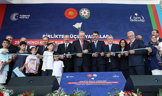 Azerbaycan Cumhurbaşkanı Aliyev'in projeyi yakından takip ettiğini vurgulayan Cumhurbaşkanı Erdoğan, inşa edilen konutların ikamet edeceklere güvenli ve huzurlu bir yuva olacağını, görenleri kendisine hayran bırakacağını söyledi.