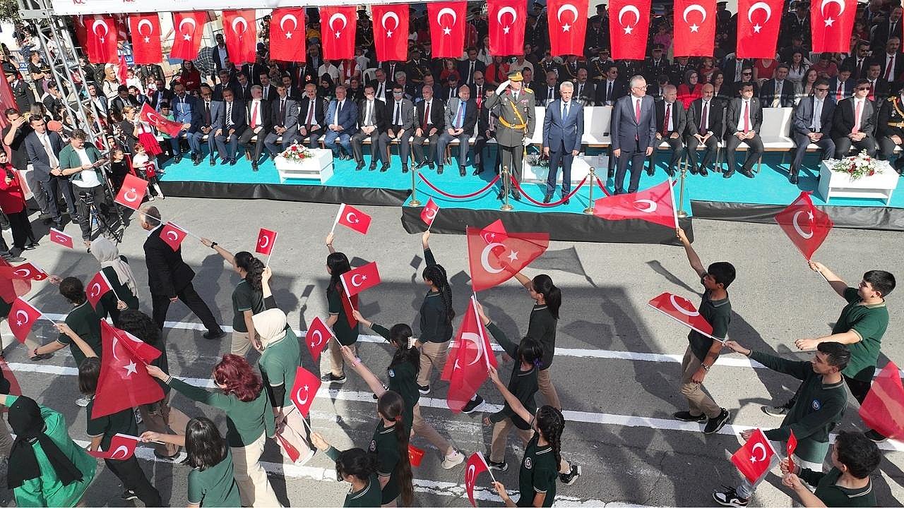 Cumhuriyetin 100. yılı tüm yurtta olduğu gibi Kahramanmaraş’ta da büyük bir coşkuyla kutlandı. Kahramanmaraş Büyükşehir Belediyesi ve Valilik iş birliğiyle dün Atatürk Meydanı’nda çelenk sunma töreniyle başlayan kutlama programı bugün de Valilikte gerçekleştirilen protokol tebrikinin ardından Kahramanmaraş Adliyesi önünde düzenlenen geçit töreni ve bir dizi etkinlikle devam etti. Şehir protokolü ve binlerce vatandaşın katılımıyla gerçekleştirilen kutlama programında; Büyükşehir Belediye Başkanı Hayrettin Güngör’ün yanı sıra Vali MükerremÜnlüer ve Garnizon Komutanı Tuğgeneral Emin Mehmet Terzioğlu, araç üzerinde alandaki katılımcıları selamlayarak Cumhuriyet Bayramı’nı tebrik etti. Günün anlam ve önemini belirten konuşma ve şiir dinletisinin ardından Cumhuriyet Bayramı kutlamaları; öğrenciler, gaziler, STK temsilcileri ve askeri birliklerin geçit töreniyle noktalandı.