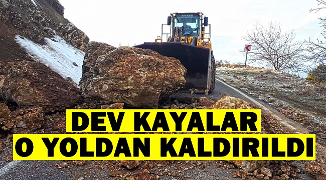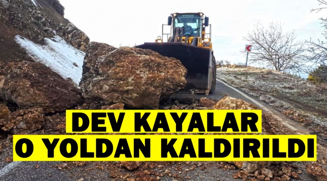 ağırlığındaki dev kayaları temizleyerek, kısa sürede yolu yeniden ulaşıma açtı.