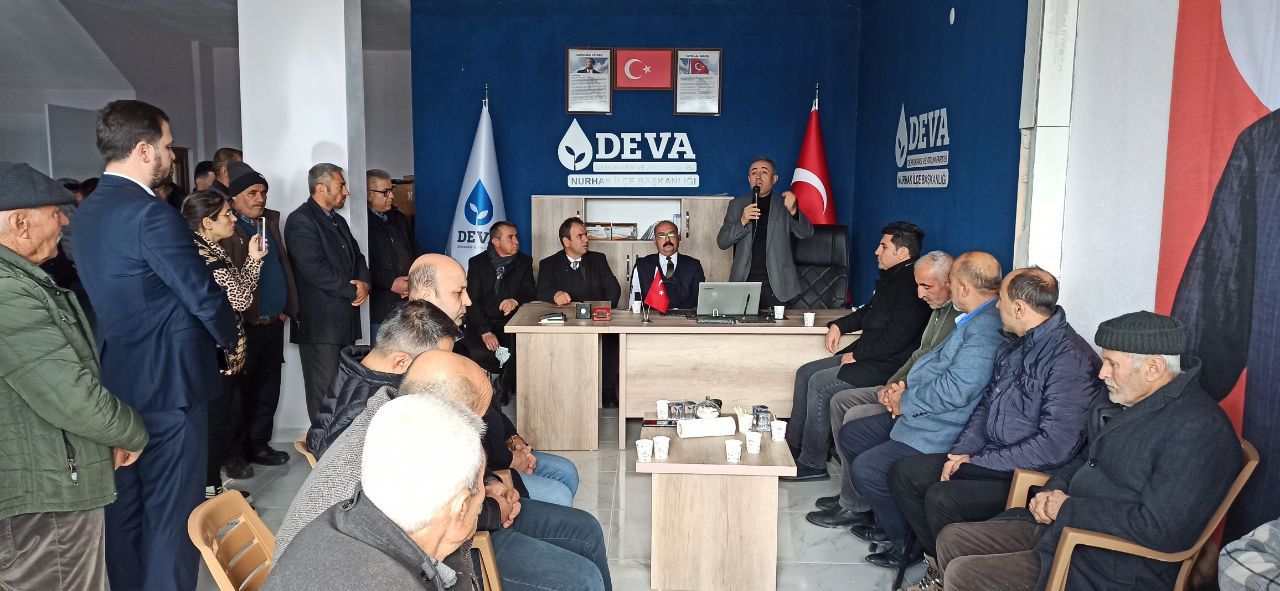 Deva Partisi Nurhak İlçe Başkanlığı binasında yapılan toplantıda Nurhak Belediye Başkan Adayı’nın Avukat Hüseyin Tank olduğu açıklandı. DEVA Partisi Nurhak İlçe Başkanlığı Binası’nda yoğun bir katılımla gerçekleşen Av. Hüseyin Tank’ın adaylık tanıtım toplantısında Kahramanmaraş Milletvekili İrfan Karatutlu, Deva Partisi Kahramanmaraş İl Başkanı Yakup İncegül, Nurhak İlçe Başkanı Ahmet Kurt, Dulkadiroğlu İlçe Başkanı Salih Dökme, il ve ilçe teşkilatlarından çeşitli isimler ve vatandaşlar da hazır bulundu.