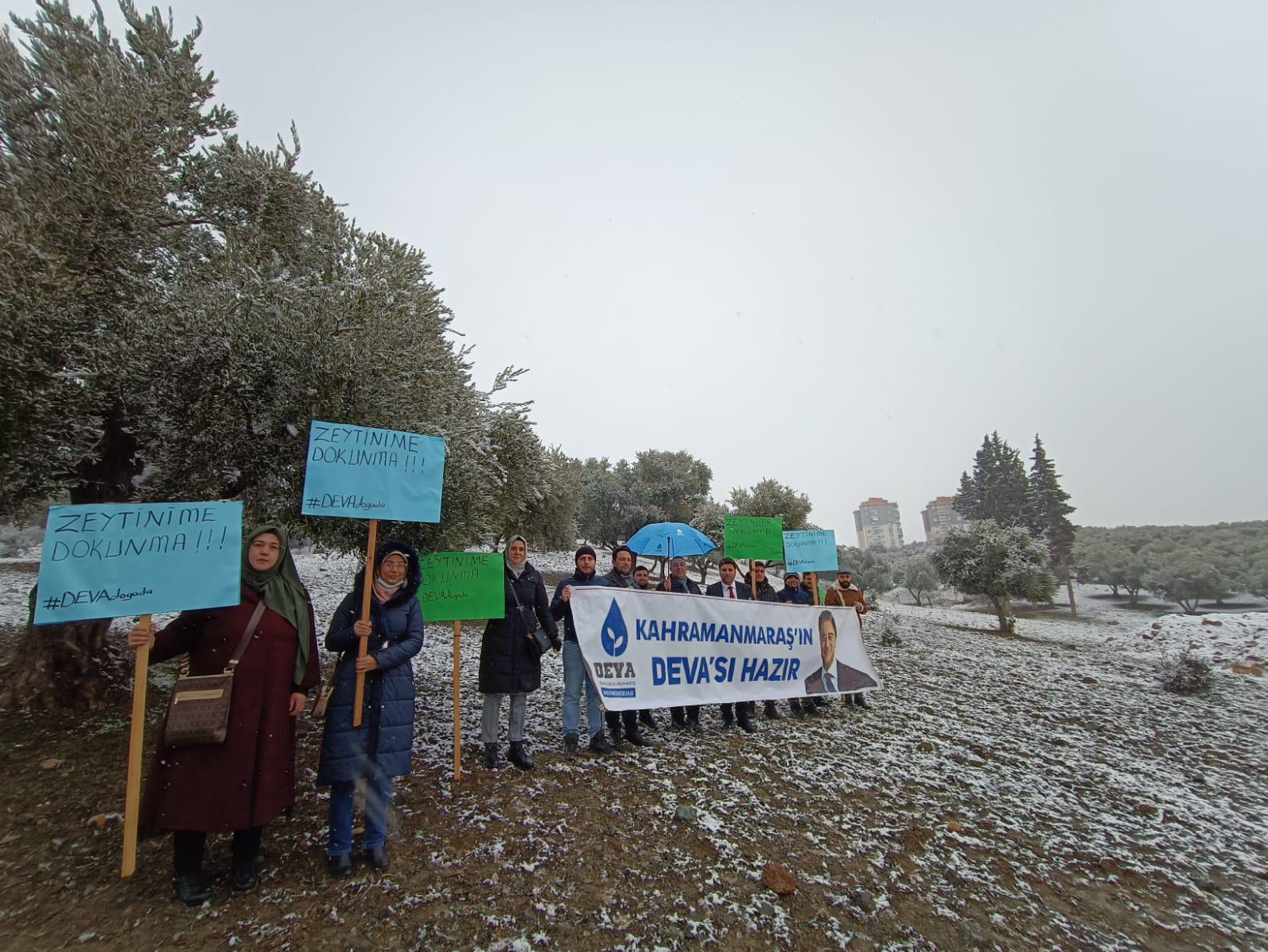 Konuyla İlgili İl Başkanı Uzm. Dr. İrfan Karatutlu Deva Partisi İl ve İlçe teşkilatları birlikte bir açıklama ve eylem gerçekleştirdi. Konuya ilişkin açıklama yapan Deva Partisi Doğa Hakları ve Çevre Politikaları Kahramanmaraş İl Başkanı Avukat Aybala Uzun Maden Yönetmeliğinde değişiklik yapılmasına dair yönetmelik ile elektrik ihtiyacının karşılanması amacıyla zeytinliklerde madencilik faaliyetleri yürütülebilmesi kararına tepki gösterdi. Avukat Aybala Uzun, iktidarın zeytinlik alanların yok edilmesi adına ısrarla gözü dönmüş imar çalışmaları girişimlerde bulunduğunu da belirtti. Yeni yapılan imar çalışmasıyla Dulkadiroğlu Dereli Mahallesi'nde onlarca hektar zeytinliğin de yok edileceğini söyleyen Aybala Uzun tarım arazilerinin değil, açılacaksa boş ve marjinal kıraç arazilerin imara açılması gerektiğini sözlerine ekledi.