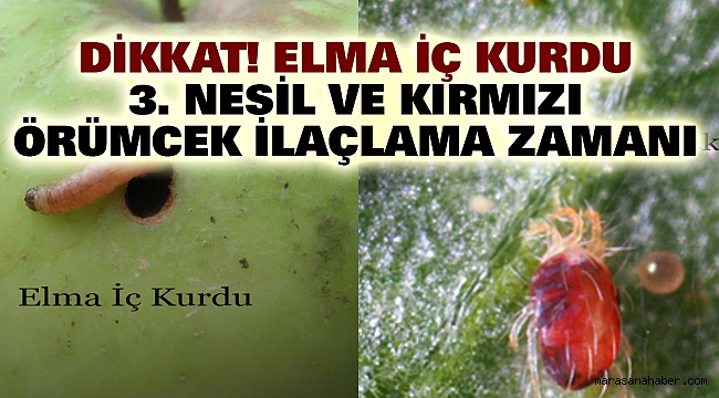 Diğer bir zararlı olan Kırmızı Örümcekler bulundukları konukçuların yaprak ve meyvelerinde bitki öz suyunu emerek zararlı olurlar ve zehirli maddeler salgılarlar. Bunun sonucu yaprak ve meyvelerde sarı kahverengi lekeler meydana gelir. Meyveler küçük kalarak kalitesi düşer. Kırmızı örümcek zararı sıcaklıkların artması ile daha da yaygın olarak görülür. Kırmızı örümcek ve diğer zararlılar ile hastalıkların görüldüğü bahçelerde, mücadele konusunda gerekli uyarı ve bilgilendirmeler yapılarak İlçe Müdürlüğümüzce önerilen bitki koruma ürünleri tavsiyesinde bulunulmaktadır. Üreticilerimizin de bahçelerine sık sık kontrol ederek herhangi bir olumsuzlukla karşılaşmaları halinde İlçe Müdürlüğümüze başvurması gerekmektedir.