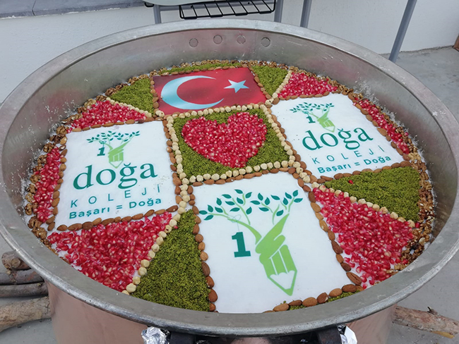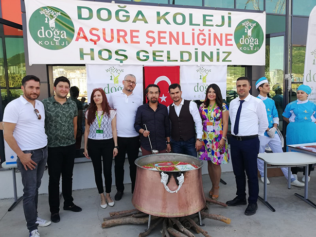Öğrencilerin yanında velilerin de katılım gösterdiği etkinlikle aynı zamanda velilerin kaynaşması da amaçlandı. Doğa Koleji bahçesinde düzenlenen etkinlikte ay yıldızlı Türk Bayrağı, kalp ve Doğa Koleji’nin logosuyla süslenen aşure, katılımcılara ikram edildi.