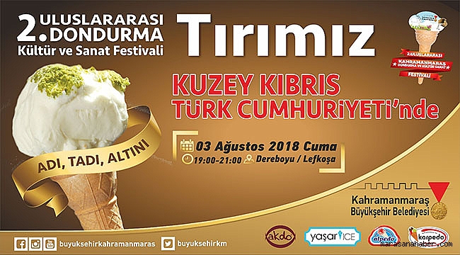 2. uluslararası kahramanmaraş dondurma ve kültür sanat festivali ‘nin tanıtımı için 3 Ağustos 2018 Cuma günü Lefkoşa’da olacak olan dondurma tırı saat 19.00-21.00 arasında Dereboyu ‘nda hizmet verecek.Dondurma tırı 4 Ağustos Cumartesi 16.00-17.00 Yeni Erenköy Meydanı’nda, 19.00-21.00 MGA Önü (Sakarya) Gazimağusa’da hizmet verecek.Dondurma tırı Kuzey Kıbrıs Türk Cumhuriyeti’ndeki üçüncü gününde ise 5 Ağustos 2018 Pazar günü saat 16.00-17.00 Tatlısu Belediyesi önünde, 19.00-21.00 saatleri arasında Girne’de Gordon boyunda olacak.