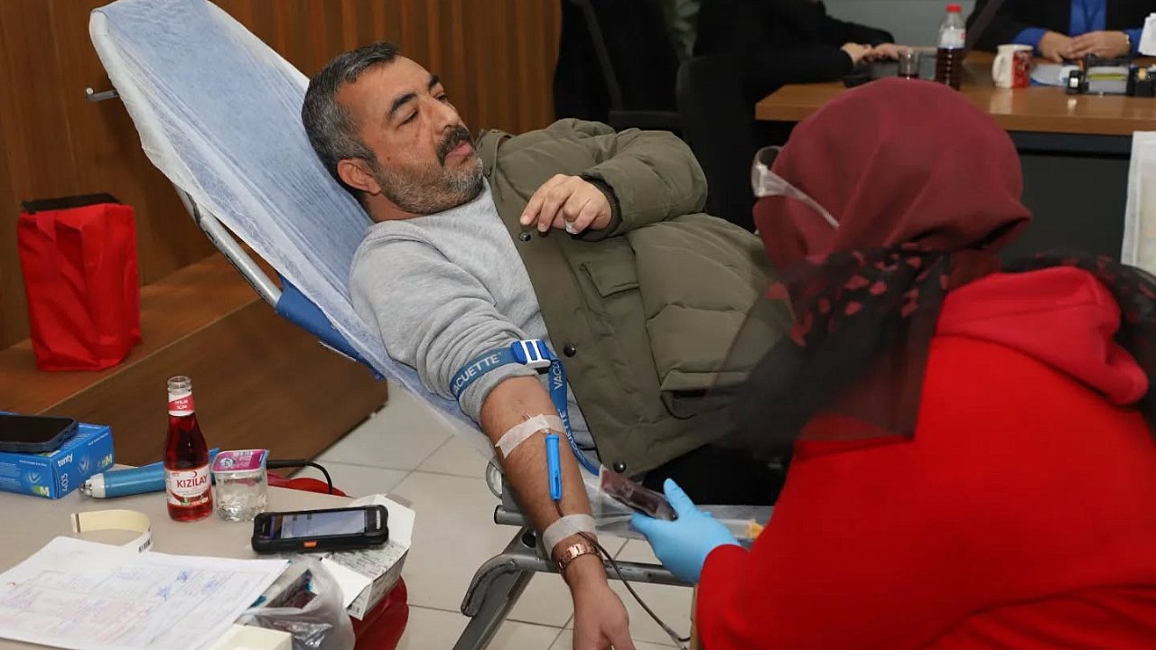 Belediye hizmet binasında düzenlenen kan bağışı etkinliği, hem belediye personeli hem de vatandaşlar tarafından yoğun ilgi gördü.