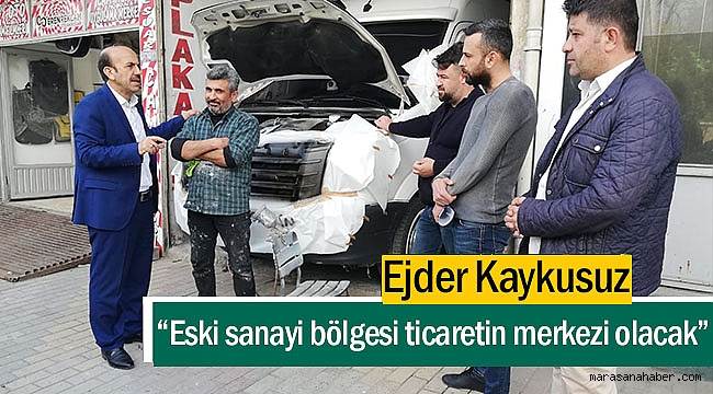 Seçim çalışmalarını eski sanayi bölgesindeki esnafları ziyaret ederek sürürden Ejder Kaykusuz, bölgeyi Kahramanmaraş’ın ticaret merkezi yapacaklarını ifade etti. Bölgede uygulanacak dönüşüm projesiyle iş merkezleri, kent meydanı ve Dulkadiroğlu Beyliğine yakışır bir saray inşa edeceklerini anlatan Kaykusuz, yeni yapılan Dulkadiroğlu Belediye binasını da mesleki eğitim merkezine dönüştüreceklerini kaydetti.
