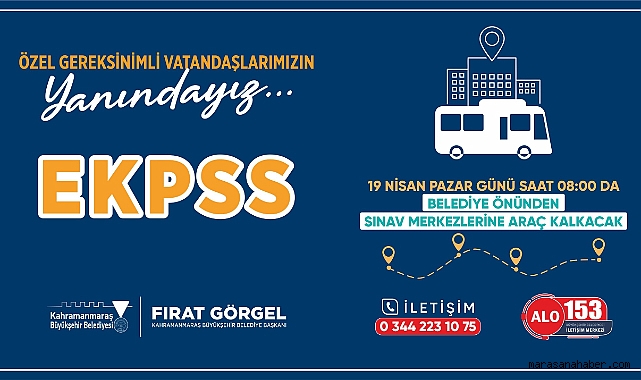 Bu kapsamda, 19 Nisan Pazar günü gerçekleştirilecek Engelli Kamu Personeli Seçme Sınavı’na (EKPSS) katılacak özel gereksinimli vatandaşlara ve refakatçilerine yönelik ulaşım desteği sağlanacak. Sınava girecek toplam bin 872 vatandaş ve refakatçileri, Büyükşehir’e ait erişilebilir araçlar ile 24 farklı sınav noktasına ulaştırılacak.