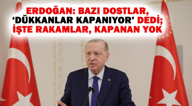 Bazı dostlarının 'dükkanlar kapanıyor' dediğini belirten Erdoğan "İşte rakamlar ortada kapanan yok" dedi.