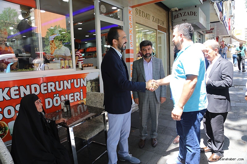 Seçim çalışmaları kapsamında Dulkadiroğlu İlçesine bulunan 27. Dönem Milletvekili Adayı Av. Ahmet Özdemir, beraberinde Dulkadiroğlu Belediye Başkanı Necati Okay, İlçe Kadın Kolları Başkanı Asuman Yavuz, İl Yönetim Kurulu Üyeleri ve teşkilat mensuplarıyla Yeni Hükümet Bulvarında bulunan esnafları ziyaret ettiler. 24 Haziran seçimleri hakkında bilgiler aktaran Milletvekili Adayı Özdemir, yaptığı açıklamada; “Yaparsa Yine Ak Parti Yapar” diyerek kendilerine verilen değer için teşekkür eetti. Özdemir, “Cumhurbaşkanımız Genel Başkanımız Sayın Recep Tayyip Erdoğan'a gösterilen teveccüh için kıymetli vatandaşlarımıza minnetlerimizi sunuyoruz” dedi. Açıklamalarının ardından radyo programına katılacak olan Milletvekili Adayı Av. Ahmet Özdemir, esnaf ziyaretini tamamladılar.