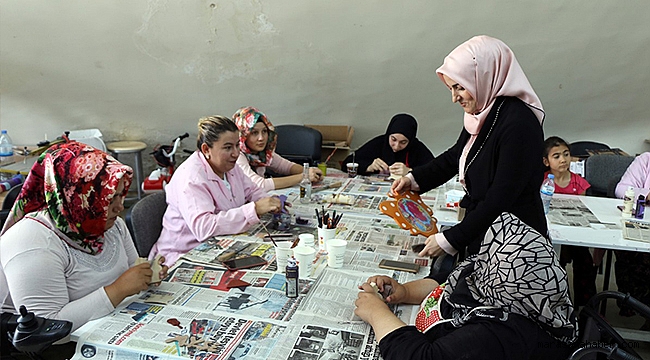 Kahramanmaraş Büyükşehir Belediyesi kadın ve Aile Şube Müdürlüğü bünyesinde kadınlara yönelik devam eden kursa katılan ev hanımları hem el becerisini geliştiriyor, hem meslek sahibi oluyor hem de aile bütçesine katkı sağlıyor.