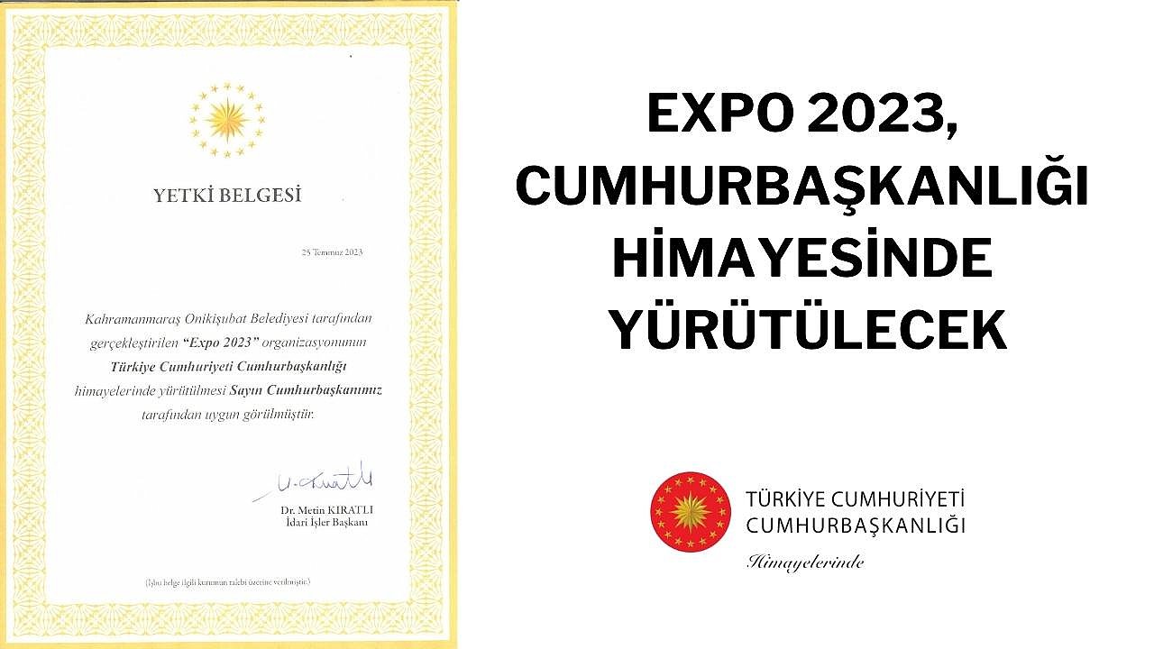 T.C. Cumhurbaşkanlığı İdari İşler Başkanı Dr. Metin Kıratlı’nın imzasıyla yayınlanan Yetki Belgesi ile Uluslararası EXPO 2023’ün T.C. Cumhurbaşkanlığı himayesinde düzenlemesi Cumhurbaşkanı Recep Tayyip Erdoğan tarafından uygun görüldü.
