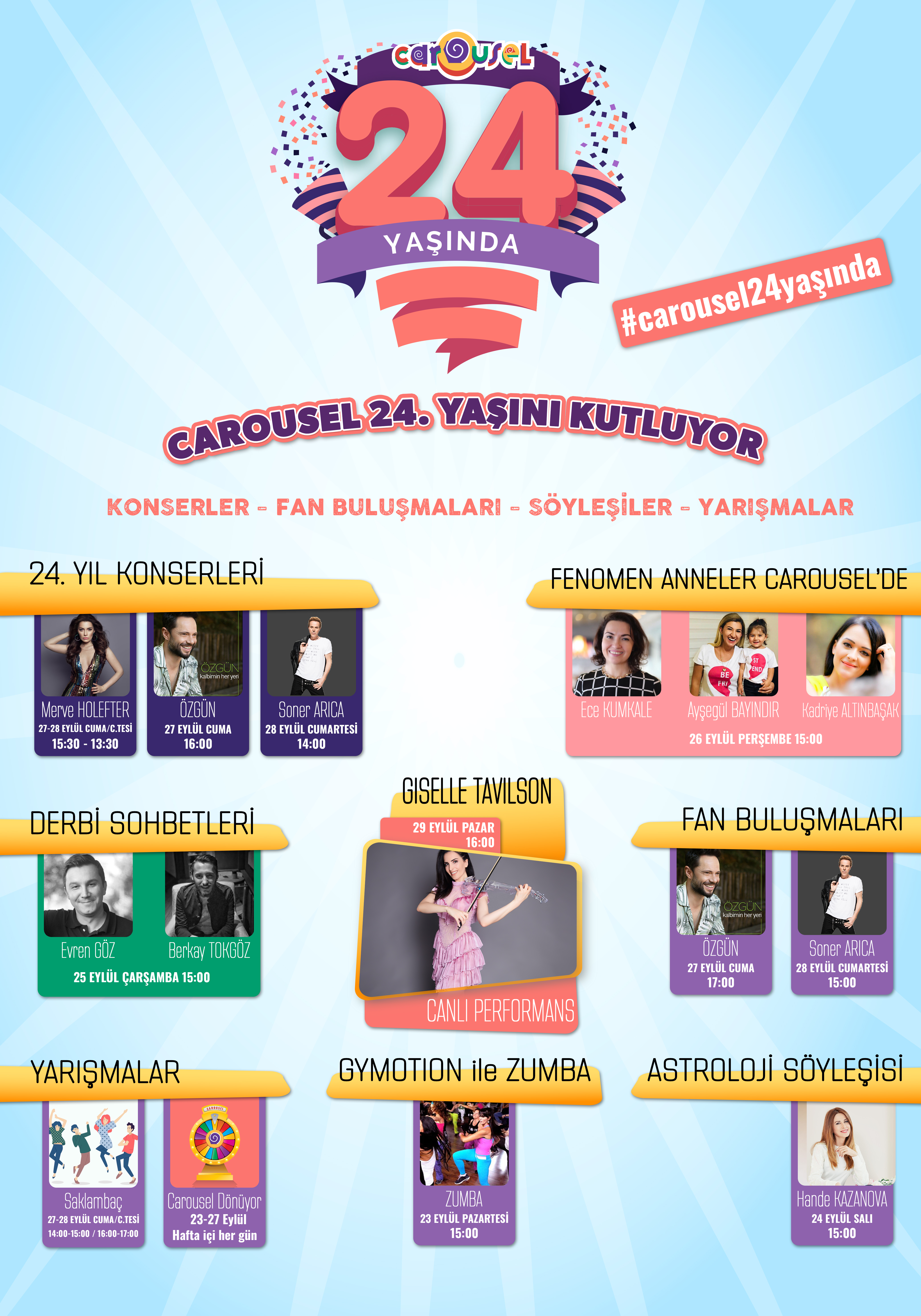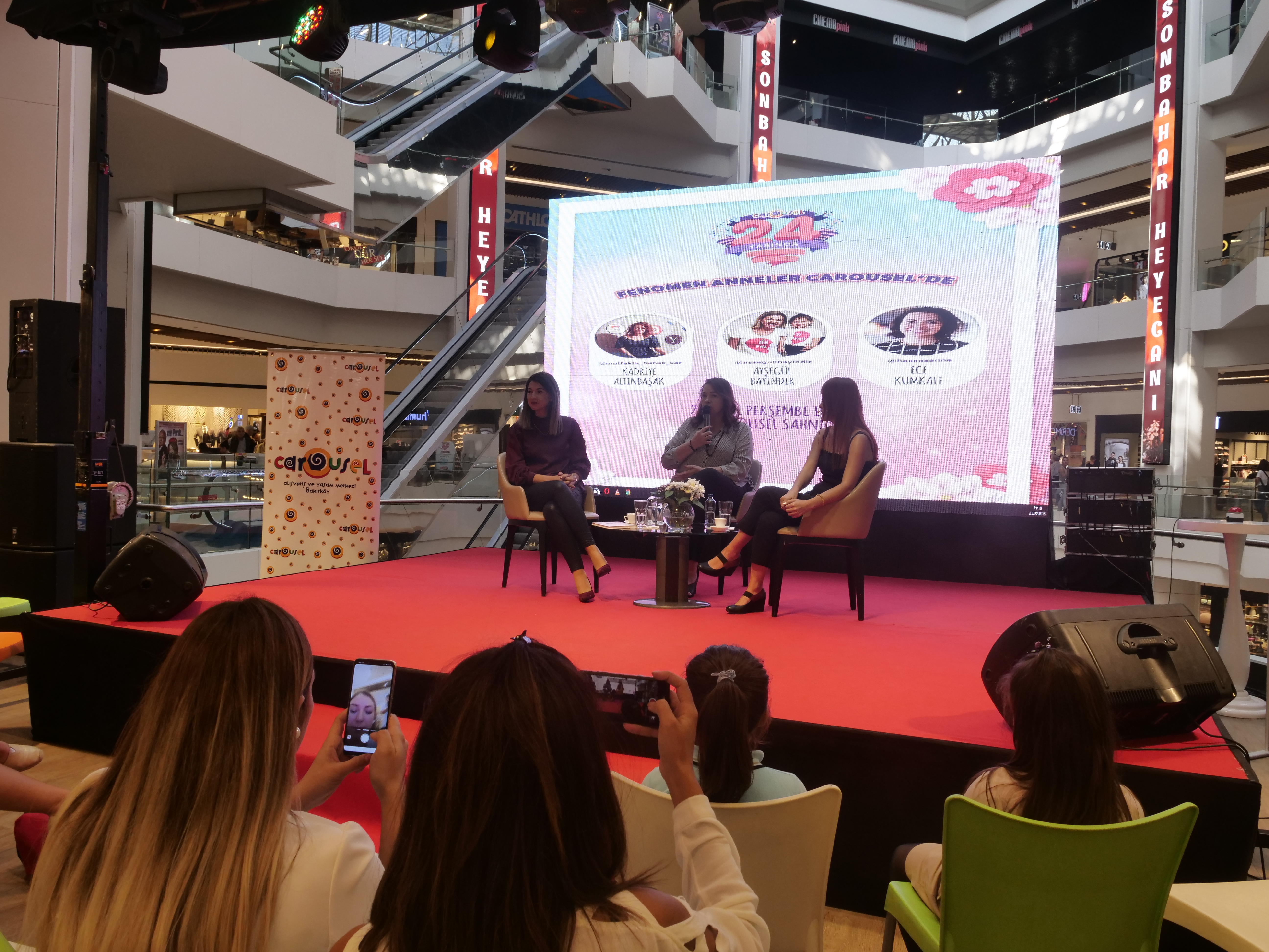 Dinamik ve modern yüzü ile ziyaretçilerine hizmet vermeye devam eden Carousel Alışveriş ve Yaşam Merkezi 24. Yıldönümüne özel gerçekleştirilen festivalin 4. Gününde ‘’Fenomen Anneler’’i ağırladı. Anne ve anne adaylarının ilgi gösterdiği söyleşide anne-bebek-çocuk ilişkisine dair her şey masaya yatırıldı.“Masal Tadında Bebek Yemekleri” kitabının yazarı olan Ayşegül Bayındır, “Hassas Anne” kitabının yazarı Ece Kumkale ve sosyal medya fenomeni anne Kadriye Altınbaşak annelik deneyimlerini ve tecrübelerini ziyaretçilerle paylaştılar. Çocuklarda beslenme düzeni ve uyku disiplini hakkında tüyolar veren anneler çocukların beslene alışkanlıkları ve ek gıdaya geçerken nelere dikkat edilmesi gerektiğinin üzerinde durdular.