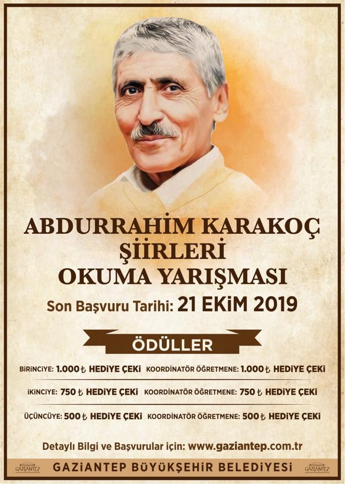 Gaziantep Büyükşehir Belediyesi Gençlik ve Spor Hizmetleri Daire Başkanlığı tarafından düzenlenen Abdurrahim Karakoç Şiirleri Okuma Yarışması’na başvurular 14 Ekim ile 21 tarihleri arasında yapılabilecek.