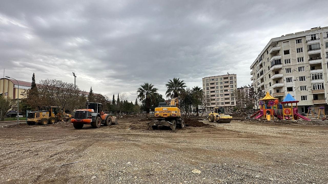 Büyükşehir Belediyesi, geçici barınma alanları ve esnaf çarşılarında 130 araç ve 250 personelle altyapı imalatı ve zemin iyileştirme uygulamalarını sürdürüyor.
