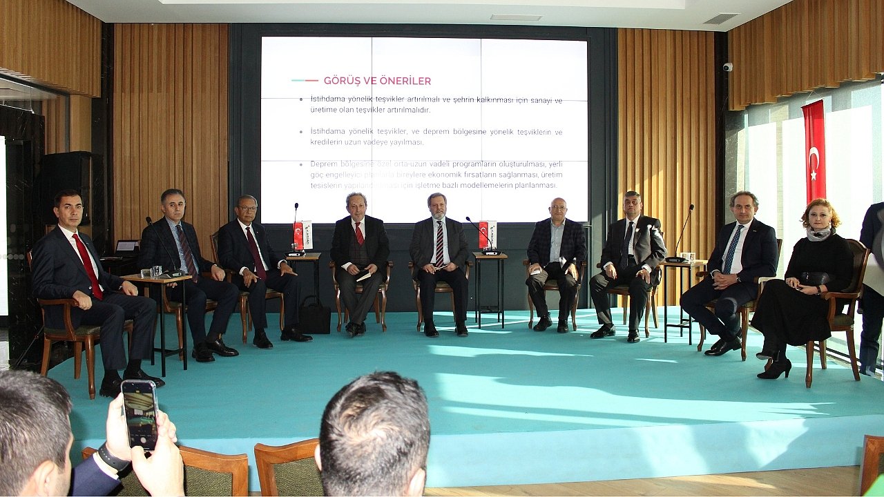 KASİAD üyelerinin katılımı ile gerçekleştirilmiş olan anket çalışmasının sonucunu analiz etmek ve nelerin yapılıp nelerin yapılmadığı gibi, istihdamdan kapasite kullanım alanına, ihracat ve ithalat değişiminden üretim kapasitesi azalma sebeplerine kadar bir çok konunun irdelendiği anket değerlendirme çalışmaları ile ilgili olarak KASİAD Yönetim Kurulu Başkan Yardımcısı Hikmet Gümüşer’in sunumu sonrası, moderatörlüğünü Handan Sema Ceylan’ın yaptığı Ekonomi Gazetesi yönetim kurulu başkanı Hakan Güldağ, Genel koordinatör ve Türkiye Gazeteciler Cemiyeti Başkanı Vahap Munyar, Yayın kurulu başkanı Dr. Şeref Oğuz ile KASİAD Yönetim Kurulu Başkanı Sıddık Ciğer ve Danışma kurulu üyeleri Mehmet Hanefi Öksüz, Ali Emiroğlu, Mikail Utlu ve Mahmut Arıkan’ın konuşmacı olarak katıldığı aralıksız 2,5 saat devam eden ‘Deprem İstişare Toplantısı’nda, deprem sonrası yapılanlar ile yapılması gerekenler görüşülüp tartışıldı. Çözüm önerilerinin ve çıkış yollarının farklı görüşlerle değerlendirilmesi gerçekleştirildi. Toplantıda alınan kararların sonuç bildirgesi olarak rapor halinde KASİAD üyelerine ve ilgili mercilere aktarılması kararlaştırılarak günün anısına düzenlenen plaket takdimi ile toplantı tamamlandı.