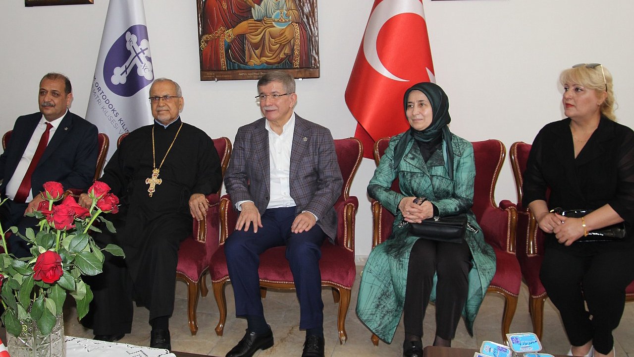 Eşi Sare Davutoğlu ve beraberindeki heyetle Rum Ortodoks Kilisesi’ni ziyaret eden Genel Başkan Davutoğlu burada Rum Ortodoks Kilisesi Ruhani Lideri Peder Coşkun Teymur tarafından kapıda karşılandı.