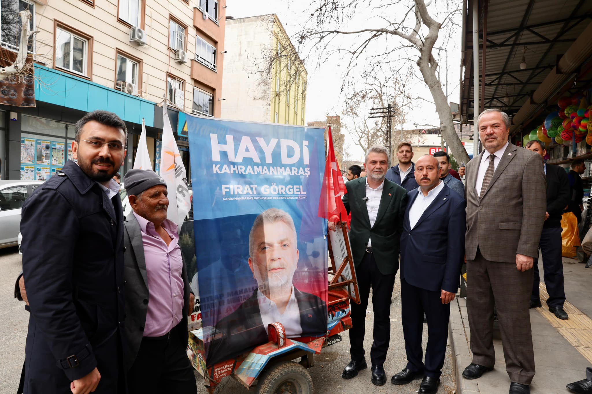 Görgel, “Bugün Kahramanmaraş’ımızın en işlek, kendine has kültürü olan caddelerinden birinde, Mağaralı Caddemizdeyiz. Batıpark’ta uzun yıllar futbol oynamışlığımız var. Çocukluğumuzun geçtiği bu sokaklarda değerli dostlarımız, abilerimiz var. Onları da ziyaret ediyoruz. Verimli bir esnaf gezisi yapıyoruz. Onikişubat teşkilatımız, İl Başkanımız, belediye meclis üyelerimiz ile beraber Mağaralı Caddemizde esnaflarımızla beraberiz. Esnaflarımız, caddemizle ilgili bazı sıkıntılardan bahsetti. Onlarla ilgili hem şimdi çözüm sunmaya çalışıyoruz hem de Allah izin verirse 31 Mart’tan sonra göreve gelirsek ondan sonraki süreçle alakalı düşüncelerimizi paylaşıyoruz” dedi.