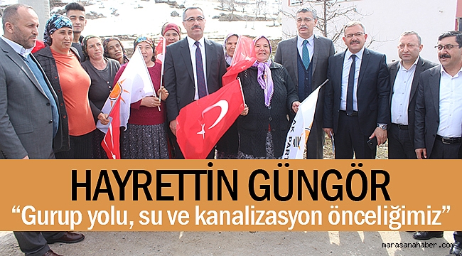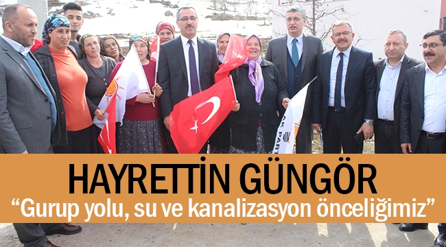 Beraberindeki heyetle birlikte ilçeye bağlı Çardak, Ericek ve Tombak Mahallelerini ziyaret eden Başkan adayı Güngör, göreve gelmesi halinde önceliğinin kırsal mahallerinin gurup yolu, su ve kanalizasyon sorunu çözmek olduğun belirtti.