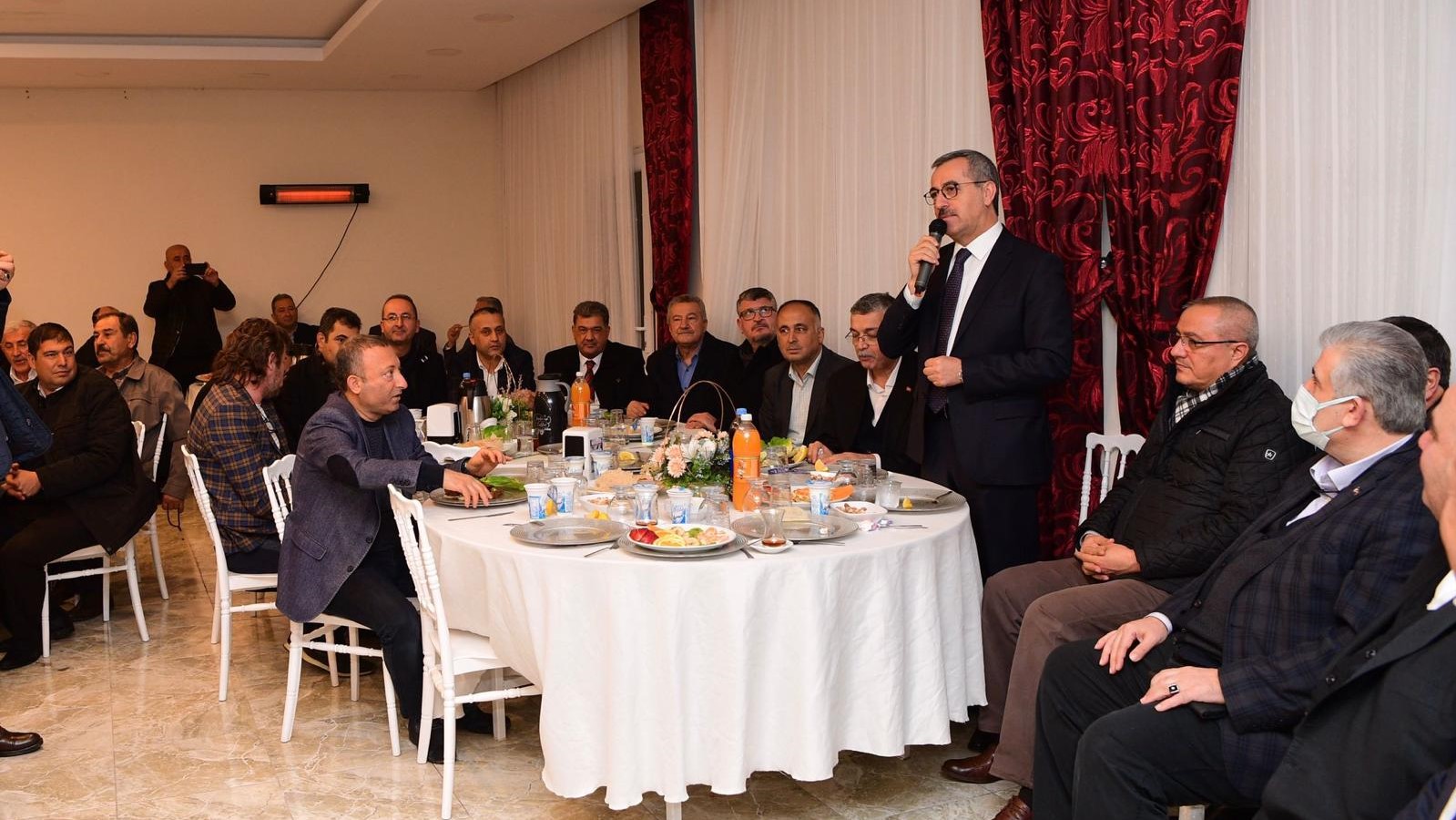 Kahramanmaraş Büyükşehir Belediye Başkanı Hayrettin Güngör, Dulkadiroğlu ilçesi muhtarlarıyla bir araya geldi. TBMM İçişleri Komisyonu Başkanı Celalettin Güvenç ve AK Parti İl Başkan Yardımcısı Hakan Dereli’nin de yer aldığı ziyaret ile ilgili açıklamalarda bulunan Başkan Güngör, “Karaziyaret Mahallesi Muhtarımız Hacı Ahmet Sivri’ye ev sahipliği için teşekkür ediyorum. Dayanışmanın en güzel örneğini teşkil eden muhtarlarımızın muhabbetlerine ortak olmak bizi ziyadesiyle memnun etti. Muhtarlarımızla, vatandaşlarımızla her zaman omuz omuzayız” diye konuştu.
