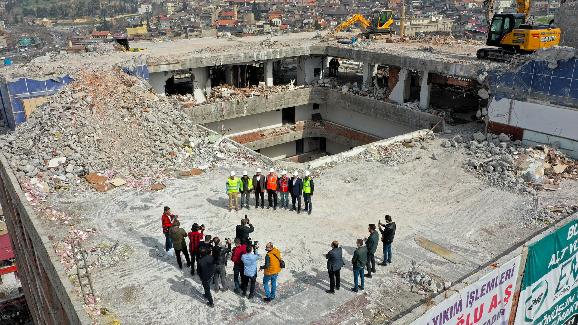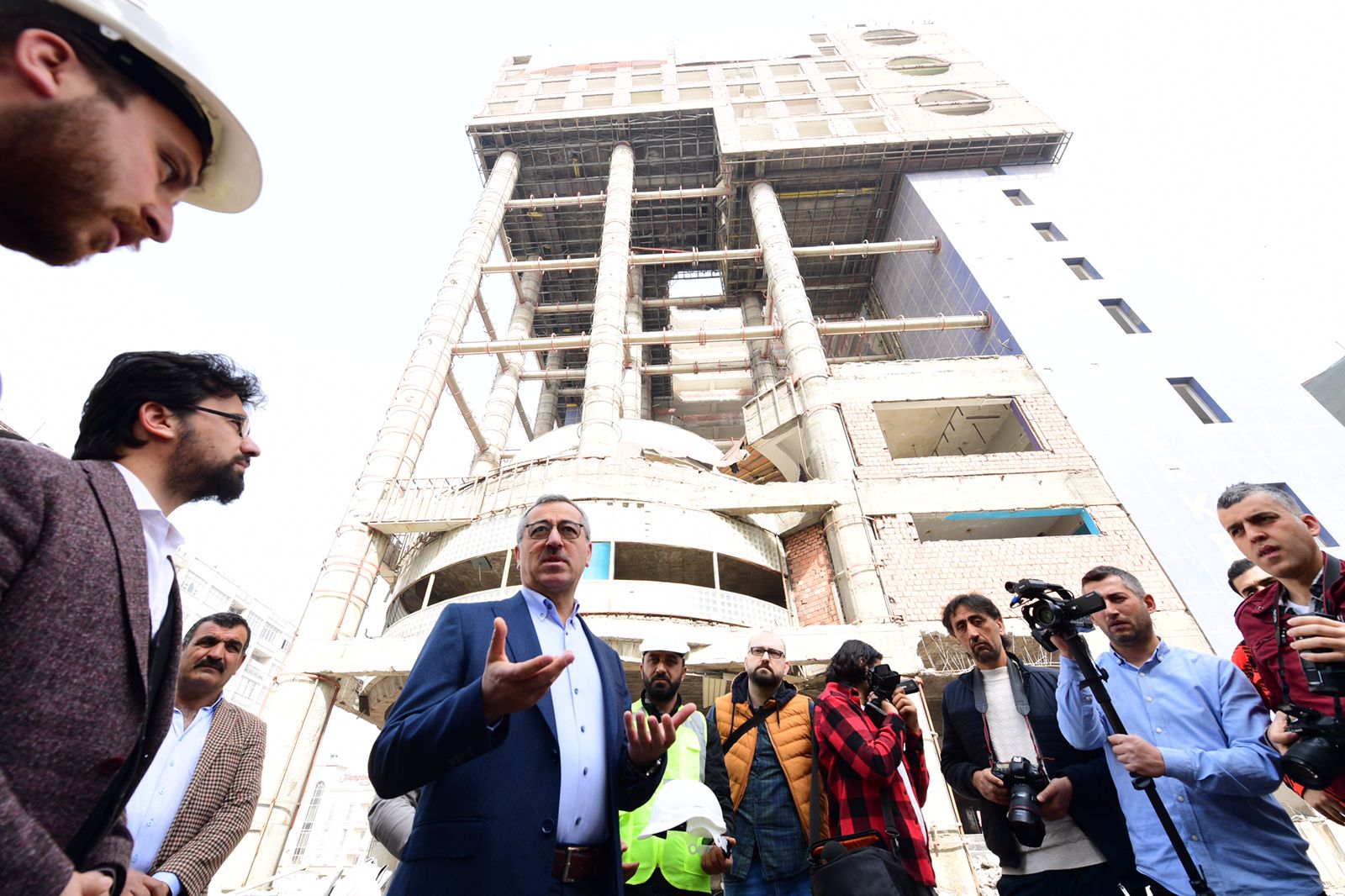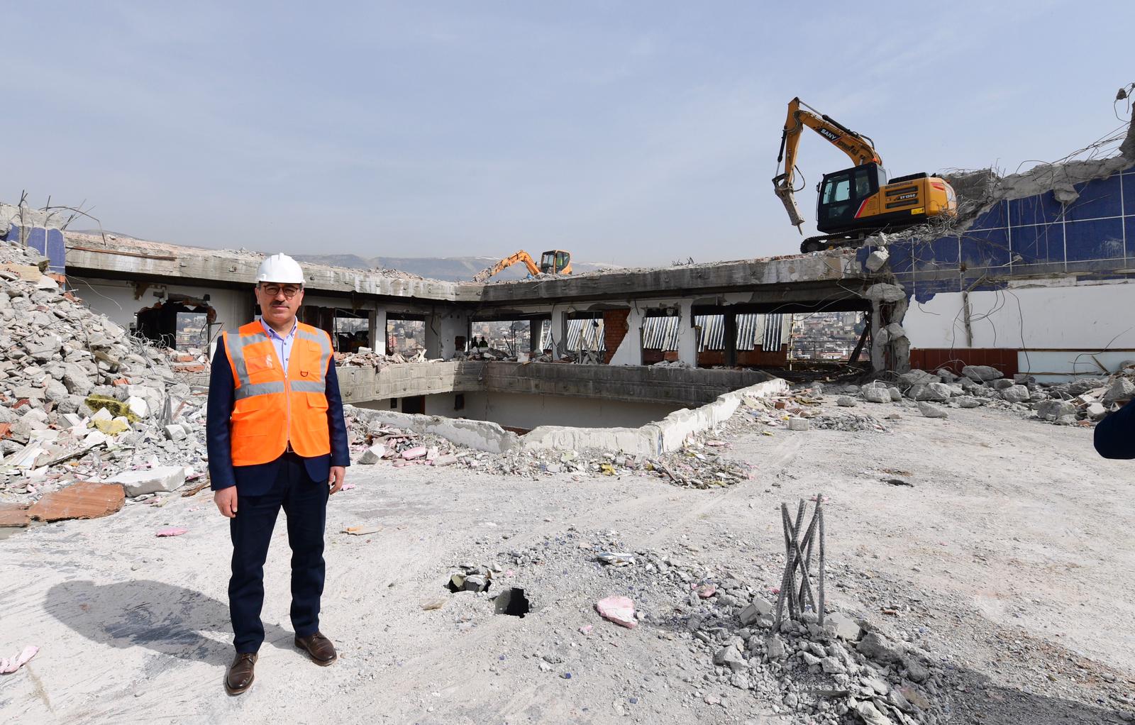 Kahramanmaraş Büyükşehir Belediye Başkanı Hayrettin Güngör, Şehir Meydanı projesi kapsamında sürdürülen çalışmaları yerinde inceledi. Çevre, Şehircilik ve İklim Değişikliği Bakanlığı ile ortaklaşa sürdürülen proje ile şehir merkezinde önemli bir dönüşümün gerçekleştirildiğini belirten Başkan Güngör, “40 dönümlük alanda başlatmış olduğumuz dönüşüm projemizde çalışmalarımız hızla devam ediyor. Özel İdare binamız şehrimizin merkezinde bulunan ve fonksiyonelliğini tamamen yitirmiş bir yapı. Şehrimizde yapmış olduğumuz kamuoyu araştırması neticesinde bu alanda büyük bir dönüşüm gerçekleştirme kararı aldık. Toplamda 18 katlı olan yapının şuan 13. katının yıkımını gerçekleştiriyoruz. Firmamızla yaptığımız görüşmeye göre 2 aylık bir süreçte çalışmaları tamamlamayı hedefliyoruz” diye konuştu.
