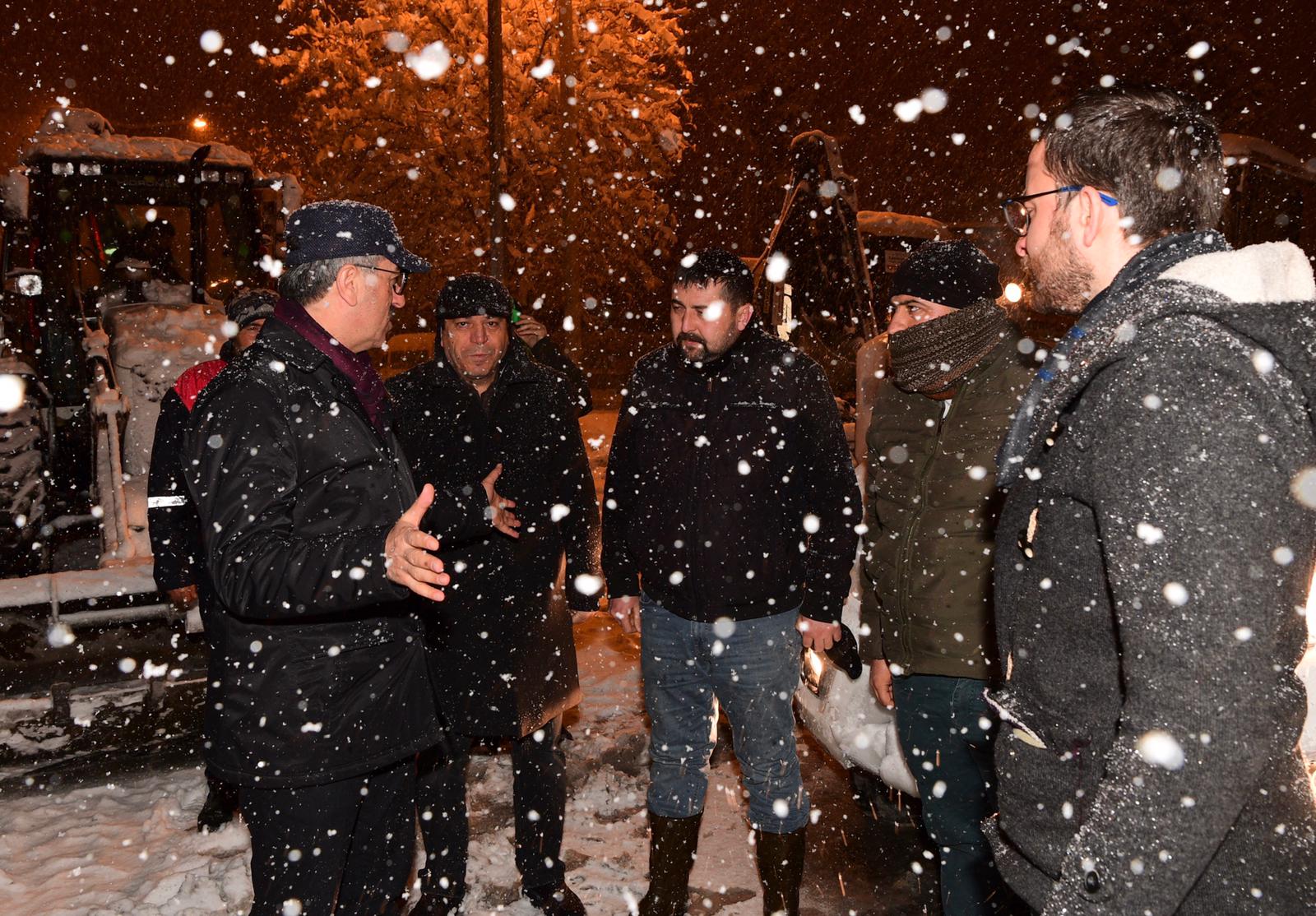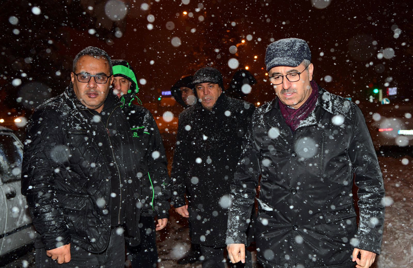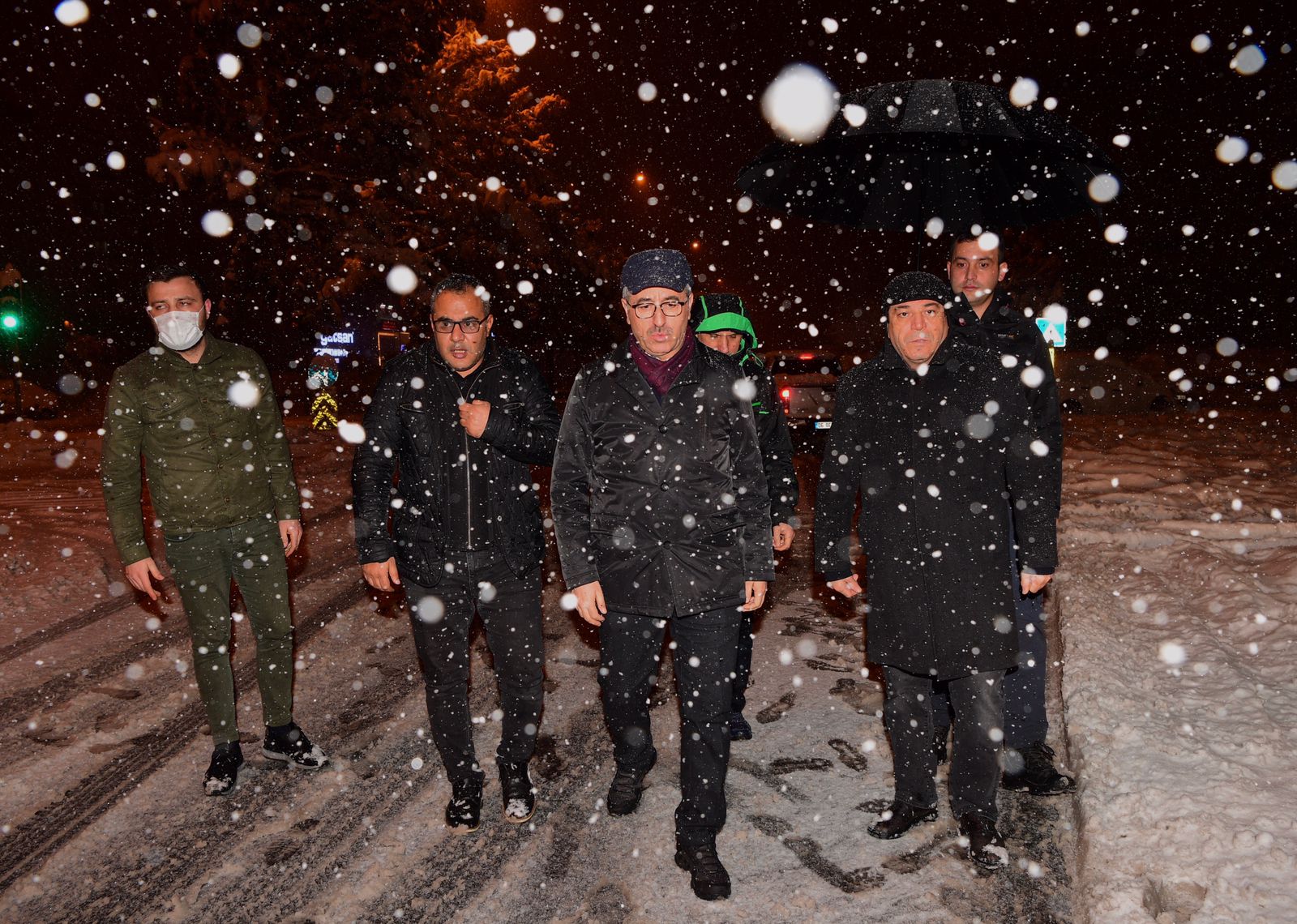 Başkan Güngör sürücülere yönelik önemli bir hatırlatmada da bulunarak, “Öğleden sonra 16.00 ila 18.00 arasında hem iş çıkışı olması hem okullarımızın çıkış saatine bağlı olarak yoğunlaşan trafik dolayısıyla kısmi tıkanıklıklar meydana geldi. Kar lastiği olmayan araçlarımızın kaymaları da tıkanıklıkların açılmasını güçleştirdi. Hiçbir yolumuzu, ana arterimizikapalı bırakmadık. Bütün hazırlıklarımız tamam. Şu an hamdolsun bir sıkıntımız yok. Kar hakikaten bizim için bir rahmet, nimet. Belki ufak tefek sorunlar yaşanabilir. Büyükşehir Belediyesi olarak sahadayız tuzlama,kar temizliği, solüsyon yoğun çalışmalar gerçekleştiriyoruz. Fakat sürücülerimizden kar lastiği ve zincir kullanımı noktasında hassasiyet bekliyoruz” dedi.