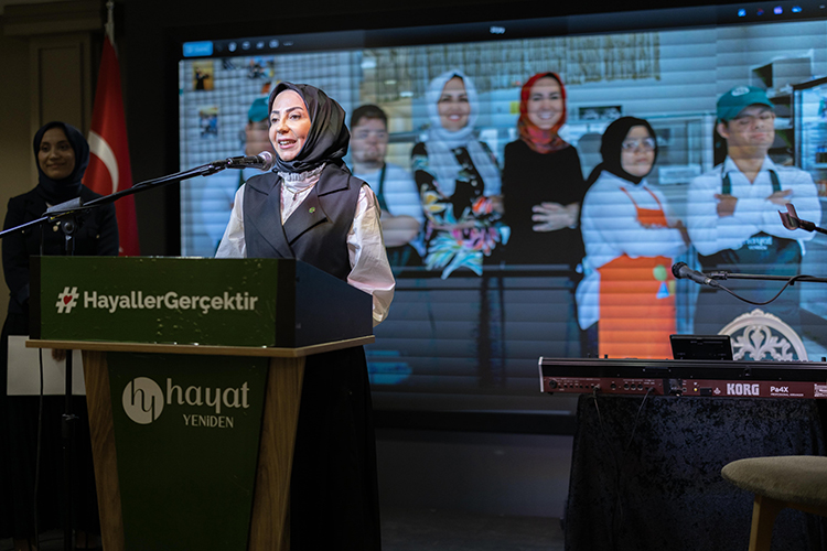 Hayat Yeniden Vakfı Başkanı Zeynep Nur Yerhan konuşmasında, vakfın genel vizyonunu, etkinliğin anlamını ve toplum için taşıdığı önemi vurgulayarak "Bugün burada, hep birlikte çok anlamlı bir buluşmaya şahitlik ediyoruz. Ramazan ayının birlik, beraberlik ve dayanışma ruhunu, Downsendromlu çocuklarımız, depremde yetim kalan evlatlarımız ve aileleriyle birlikte paylaşıyoruz. Hayat Yeniden Eğitim ve Kültür Vakfı olarak, her zaman dezavantajlı grupların yanında olmayı ve onların sesi olmayı görev biliyoruz.Dünya Down Sendromu Günü’nde düzenlediğimiz bu iftar, sadece bir yemek buluşması değil; sevginin, anlayışın ve toplumsal dayanışmanın en güzel örneklerinden biridir. Çocuklarımızın yüzlerindeki tebessüm, hepimize umut ve güç veriyor.” dedi.