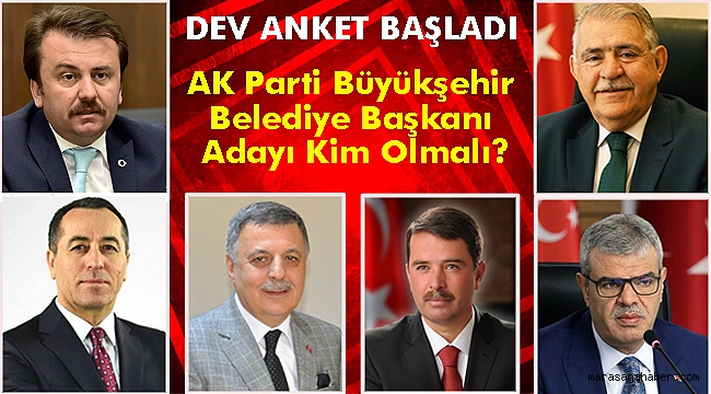 ANKETE KATILMAK İÇİN TIKLAYIN!Mart 2019’da gerçekleştirilecek olan Yerel Seçimler’e yaklaşık 5 buçuk ay kaldı. Sizde Kahramanmaraşlı vatandaş olarak kentinizde bu seçimde kimleri Büyükşehir Belediye Başkanı olarak görmek istersiniz? İlk belirlemelere göre Kahramanmaraş’ta resmi olmayan sonuçlara Büyükşehir Belediye Başkanlığına aday olacak isimler arasında şimdiki görevde bulunan Büyükşehir Belediye Başkanı Fatih Mehmet Erkoç dahil, eski Başbakan Yardımcısı Veysi Kaynak, Türk Parlamenterler Birliği Başkanı (TPBB) Nevzat Pakdil, Onikişubat Belediye Başkanı Hanefi Mahçiçek, Belediyeler Birliği Genel Sekreteri Hayrettin Güngör ve Türkoğlu Belediye Başkanı Osman Okumuş’un yer alacağı iddia ediliyor.
