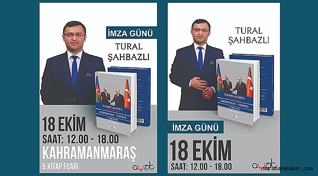 Kahramanmaraş azerbaycan Eğitim ve Kültür ve Dayanışma Derneği Başkanı Tural Şahbazlı'nın İlham Aliyev Döneminde Azerbaycan-Türkiye İlişkileri adlı kitabı, bu sene 5'incisi gerçekleştirilen Kitapp ve Kültür Fuarı' nda okurlarıyla buluşuyor.