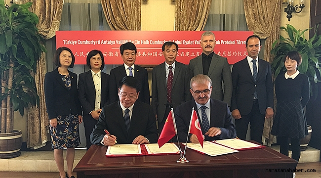 Türk ve Çinli iş insanlarıyla makamında bir araya gelen Vali Karaloğlu, Antalya Valiliği olarak geçen sene Anhui eyaletini ziyaret ettiklerini, bu ziyaret sırasında eyalet valisiyle dostluk ve iş birliği protokolüne imza attıklarını söyledi. Anhui'nin 75 milyonluk nüfusuyla Türkiye kadar büyük bir eyalet olduğunu aktaran Karaloğlu, şu anda Türkiye ve Çin Halk Cumhuriyeti arasında hem siyasi hem de dostluk ilişkilerinin üst düzeyde olduğunu ifade etti. İki ülke arasındaki ticaret hacminin de 30 milyar dolar civarında olduğuna dikkati çeken, Karaloğlu, "28-29 milyarlık bir dış ticaret hacmimiz var, ancak bir problemimiz var. Bizim ihracatımız bu dış ticaret içerisinde 3 milyar dolar civarında. Bunu sürdürülebilir kılmak için mutlaka dış ticareti dengeye getirmek zorundayız. İhracat ve ithalat rakamlarını bir birine yaklaştırmak zorundayız." ifadelerini kullandı. Karaloğlu, bu senenin Çin'de "Türkiye turizm yılı" olarak ilan edildiğini hatırlatarak, Antalya'nın da Türkiye'nin turizm başkenti olduğunu vurguladı. Çin'deki turizm yılı nedeniyle çok önemli etkinlikler yapıldığını anlatan Karaloğlu, "Şu anda 2017 ile 2018 yılını mukayese ettiğimizde Türkiye'ye gelen Çinli turist sayısında yüzde yüz artış var ama rakamlar hala çok küçük. Çin'de yılda 130 milyon turist yurt dışına seyahat ediyor. Bizim ilk hedefimiz 1 milyon 300 bin Çinli turisti ülkeye getirmek. Bizim burada ilk hedefimiz Çinli turistin yüzde 1'ini Türkiye'ye getirebilmek." şeklinde konuştu. Anhui Eyaleti Vali Yardımcısı Guangrong Yang ise Türkiye ile dostluk protokolü imzalamaktan onur duyduklarını, iki ülke arasındaki iş birliğinin giderek artmasını istediklerini söyledi. Antalya Valiliği ile Çin Halk Cumhuriyeti Anhui Eyalet Valiliği arasında dostluk protokolü imzalandı.