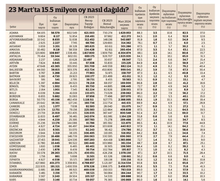 İmamoğlu’nun Cumhurbaşkanı adayı olması için toplam 15.498.721 seçmen destek verdi.