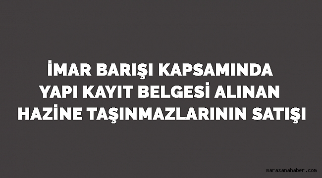 İmar Barışı Kapsamında Yapı Kayıt Belgesi Alınan Hazine Taşınmazlarının Satışı