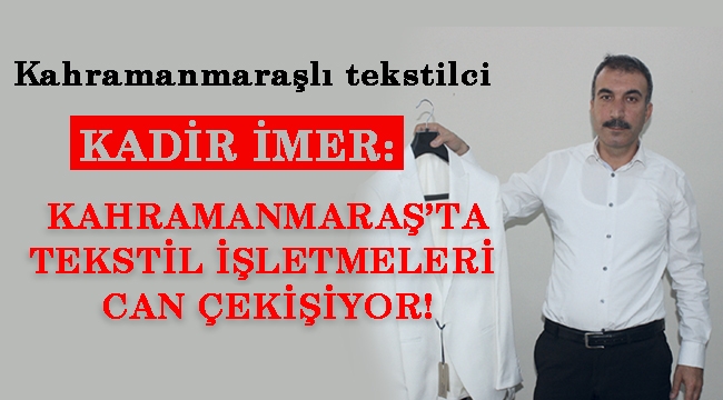 Çıraklıkla başladığı tekstil sektöründe işletme sahibi olan İmerler Giyim Moda Tekstil Yönetim Kurulu Başkanı Kadir İmer, bir tekstil şehri olan Kahramanmaraş’ta tekstil işletmelerinin can çekiştiğini söyledi. İmer, markalaşan işletmelerin bir şekilde ticaretine devam ettiğini ancak fason çalışan işletmelerin durma noktasına geldiğini belirtti.