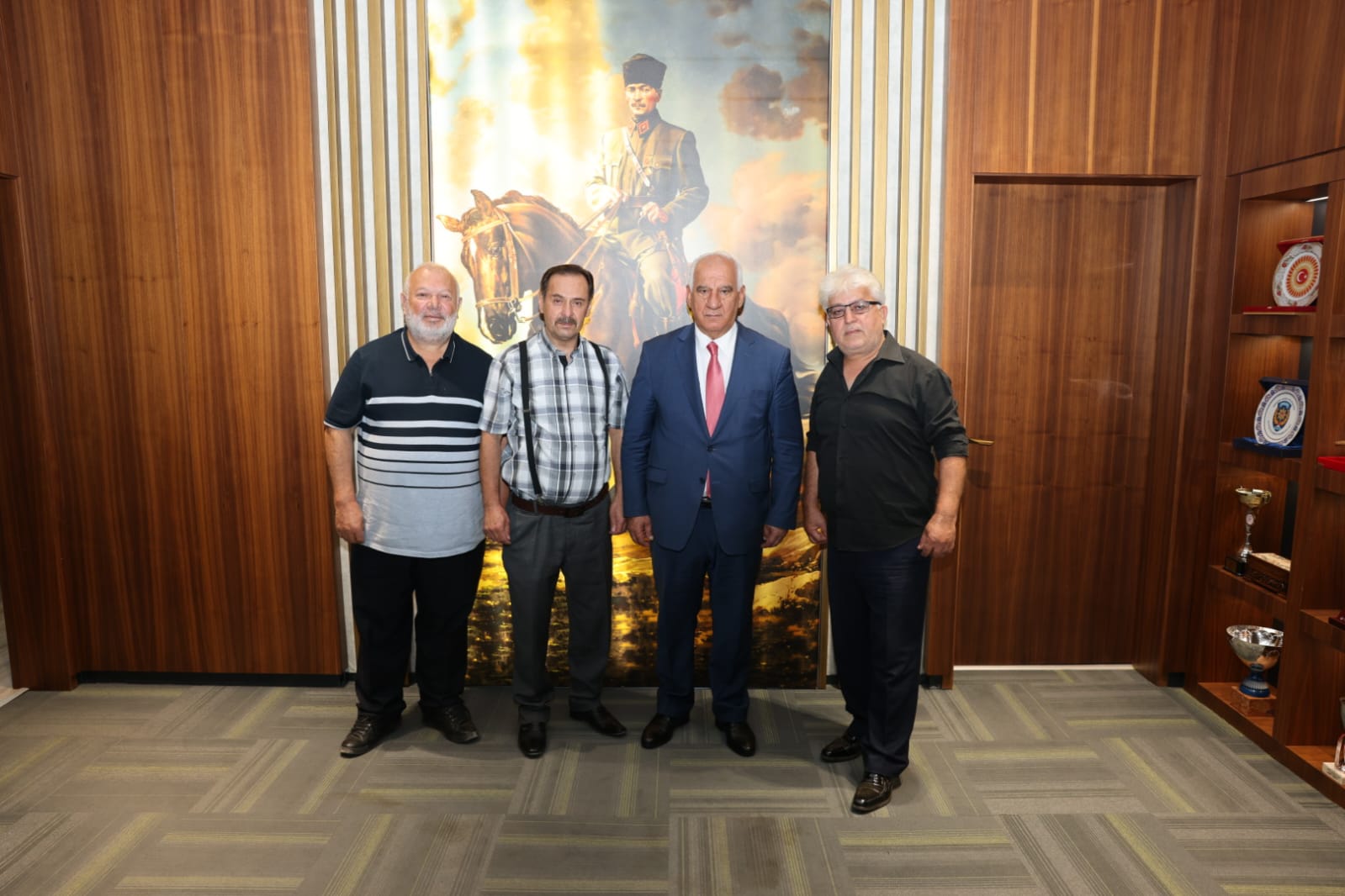 Ziyaretleri sırasında Başkan Cüce'ye yeni görevinde başarılar dileyen heyet, dernek adına yapılan hizmetleri ve yönetim kurulu adına plaket takdim etti. Başkan Cüce, nazik ziyaretleri ve kendisine sunulan hediyeler için misafirlere teşekkürlerini iletti.