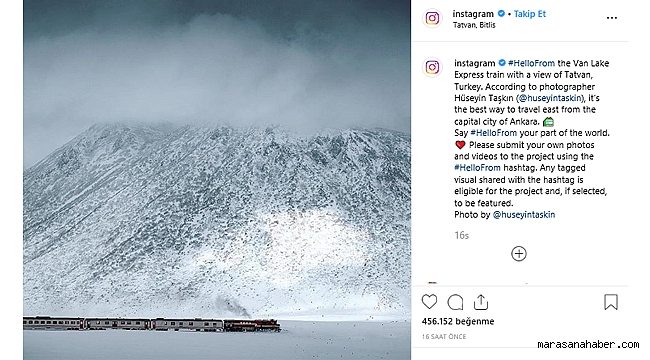 seyahat etmenin en iyi yolunun Van Gölü Ekspresi Treni olduğu vurgulandı. #hellofrom etiketi ile yapılan paylaşım 450 binin üzerinde beğeni alırken