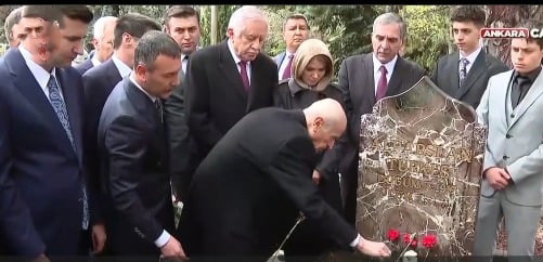 MHP Lideri, partinin kurucu lideri Alparslan Türkeş'in anıt mezarında düzenlenen törene katılıyor.