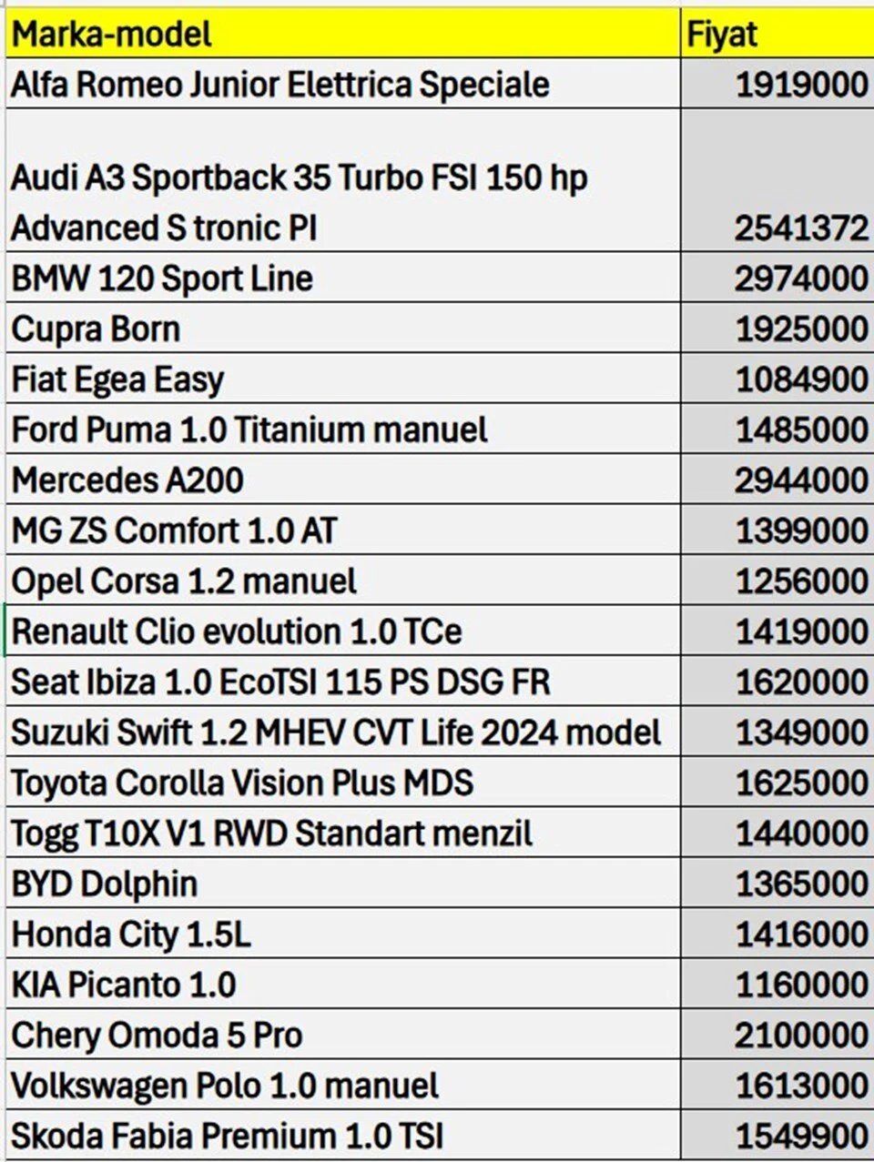 Euro kurundaki yükseliş otomobil fiyatlarına yansıtılırken sıfır otomobillerin liste fiyatları tek tek güncellendi.
