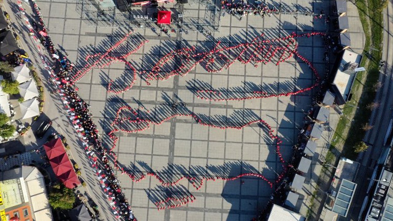 Ekibin Ulu Önder Mustafa Kemal Atatürk’ün imzası ile Türkiye haritasını çizmesi ise vatandaşlardan büyük alkış topladı.