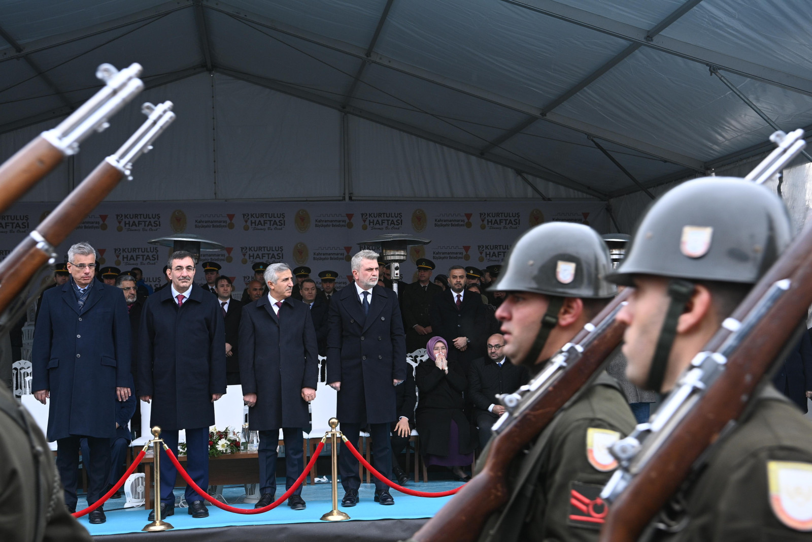 Cumhurbaşkanı Yardımcısı Cevdet Yılmaz, “Kahramanmaraş’ın düşman işgalinden kurtuluşunun 105. yılında burada olmaktan duyduğum mutluluğu ifade etmek istiyorum. 12 Şubat 1920, Kahramanmaraş’ın Fransız işgalinden kurtulduğu ve milletimizin özgürlük sevdasını tüm dünyaya gösterdiği şanlı bir tarihtir. Kurtuluş mücadelesinin meşalesinin yakıldığı ilk yerlerden biri olan Maraş’ta halk kendi çabaları ve iradeleriyle bir direniş başlatmışlardır. Rıdvan Hoca’nın ‘Kalesinde Fransız bayrağı dalgalanan bir yerde Cuma Namazı kılmak caiz değildir’ sözüyle ayağa kalkan bu kahraman şehir; Arlanbey’i, Sütçü İmam’ı ve nice meçhul kahramanlarıyla işgalcilere karşı 22 gün 22 gece mücadele vermiştir. Maraş’ı Kahramanmaraş yapan bu eşsiz direniş, sadece bu toprakları değil tüm Anadolu’nun bağımsızlık mücadelesine ilham kaynağı olmuştur. Aynı ruh bugün de emperyalist güçlere karşı onurunu, toprağını, vatanını, mukaddesatını koruma gayreti içinde olan tüm mazlumlara da ilham vermektedir” dedi.
