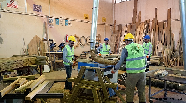 Büyükşehir Belediyesi Park ve Bahçeler Şube Müdürlüğü atölyesinde tekli bank, piknik masası, kamelya, ahşap oturma alanları, saksı, masa, sandalye, evrak dolabı gibi bütün ahşap ürünlerin üretimleri titizlikle yapılarak mesire alanları başta olmak üzere şehrin muhtelif yerlerine serpiştiriliyor.Kahramanmaraş Büyükşehir Belediyesi başta mesire alanları olmak üzere, park, bahçe ve kaldırımlar gibi alanlarda kullanılan kent mobilyalarını kendi atölyesinde üretiyor.Tam Bir FabrikaBüyükşehir Belediyesi Fen İşleri Dairesi Başkanlığı Park ve Bahçeler Şube Müdürlüğü Atölyesi tam bir fabrika gibi çalışıyor. İl genelinde kullanılmakta olan tekli bank, piknik masası, kamelya, ahşap oturma alanları, saksı, masa, sandalye, evrak dolabı gibi ürünler Büyükşehir atölyesinde kendi personelleri tarafından üretiliyor. Üretilen bu ürünler ise başta mesire alanları olmak üzere, park, bahçe, kaldırım gibi alanlarda kullanılmasının yanı sıra kendi kurum içerisinde, okul, cami ve resmi kurumların ihtiyaçlarına da cevap veriyor.Hiçbir Parça Zayi EdilmiyorBüyükşehir Atölyelerinde farklı çeşit ve ebatlarda banklar, oturma masaları, piknik gurupları, ahşap saksı gibi çeşitli ürünlerin yanı sıra çocuklar için de çeşitli oyuncaklar üretilerek halkın hizmetine sunuluyor.Üretim atölyesinde çalışan personeller iş güvenliğini dikkate alarak, çizimleri önceden hazırlanan ürünleri dikkatli bir şekilde kesme-biçme işlemlerini yapıyorlar. Kesme-Biçme işlemleri sırasında her şey çizilen plan ve proje dahilinde yapıldığı için hiçbir parça zayi edilmiyor.Emprenye ve Gravür İşlemeKesme-biçme işlemleri yapılan ahşaplar emprenye adı verilen fırınlama işlemine tabi tutularak dış etkenlere karşı daha da güçlü hale getiriliyor. Emprenye işleminin ardından ürünler yazı bölümüne getirilerek üzerine gravür tekniği ile yazı yazılıyor. Yazma işleminin ardından ürünlerin montajına başlanıyor. Montajı tamamlanan ürünler ise dikkatli bir şekilde boyama, vernikleme gibi işlemlerden geçirilerek kurumaya bırakılıyor. Kuruma işlemleri tamamlanan ürünler son bir kontrolden geçirilerek halkın hizmetine sunulmak üzere ilgili yerlere gönderilip yerleştiriliyor.