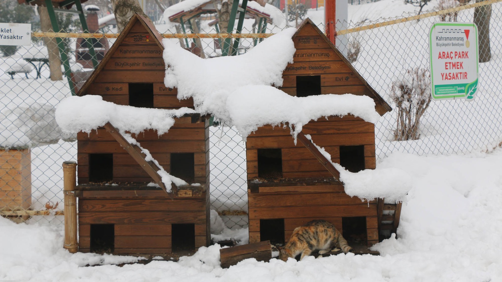 Kahramanmaraş Büyükşehir Belediyesi, sosyal belediyecilik çalışmalarıyla örnek olmaya devam ediyor. Kış mevsiminin etkilerinin hissedilir şekilde arttığı günlerde sokakta yaşayan canlılar için yaklaşık 1 ton konserve gıda ve mama bırakılırken, yeni yuvalar da can dostları sıcak tutacak. Bu kapsamda, Park ve Bahçeler Şube Müdürlüğü atölyelerinde üretilen onlarca beslenme ünitesi, kedi evi ve köpek kulübesi şehrin muhtelif bölgelerinde konumlandırıldı. Pınarbaşı, Çamlık, Muhsin Yazıcıoğlu Parkı, Atatürk Parkı, Hobi Bahçesi, Kapıçam, Malik Ejder Türbesi, Aziz Sancar Parkı, Türkoğlu, Arslanbey Doğal Yaşam Parkı, Midilli At Çiftliği, 15 Temmuz Millet Bahçesi, Aliya İzzetbegoviç Millet Bahçesi, Kılavuzlu Mesire Alanı, Şehitler Koruluğu ve Şehirlerarası Otobüs Terminali’ne konumlandırılan ünitelerle, can dostların barınma ve beslenme ihtiyacı karşılanacak.