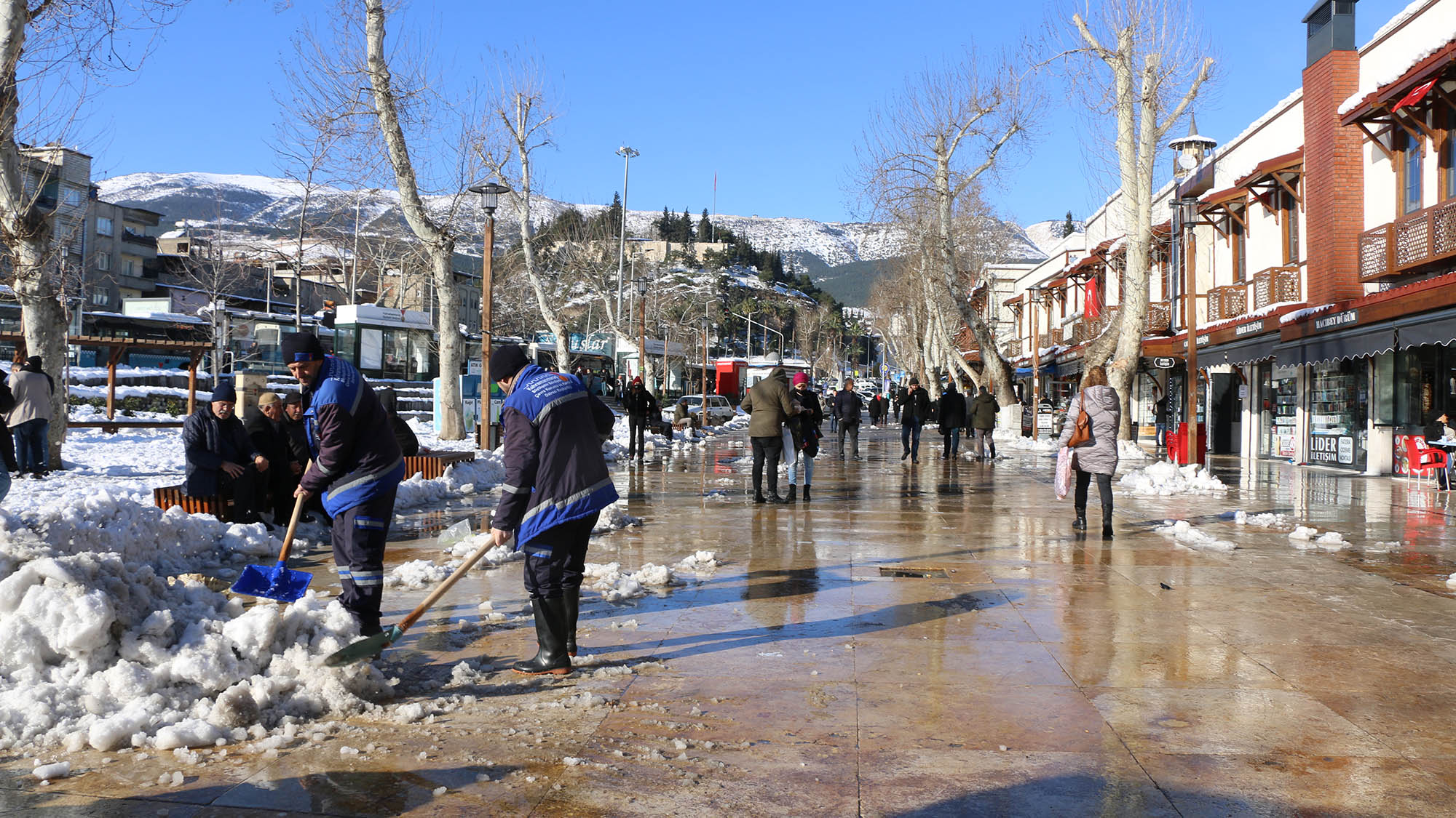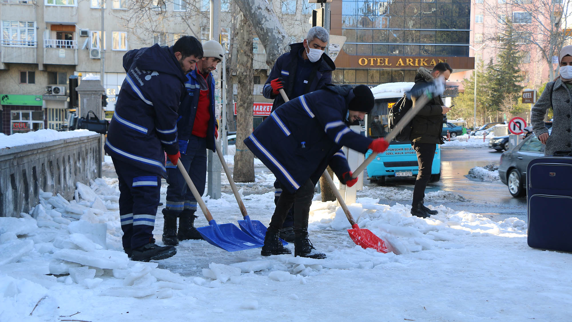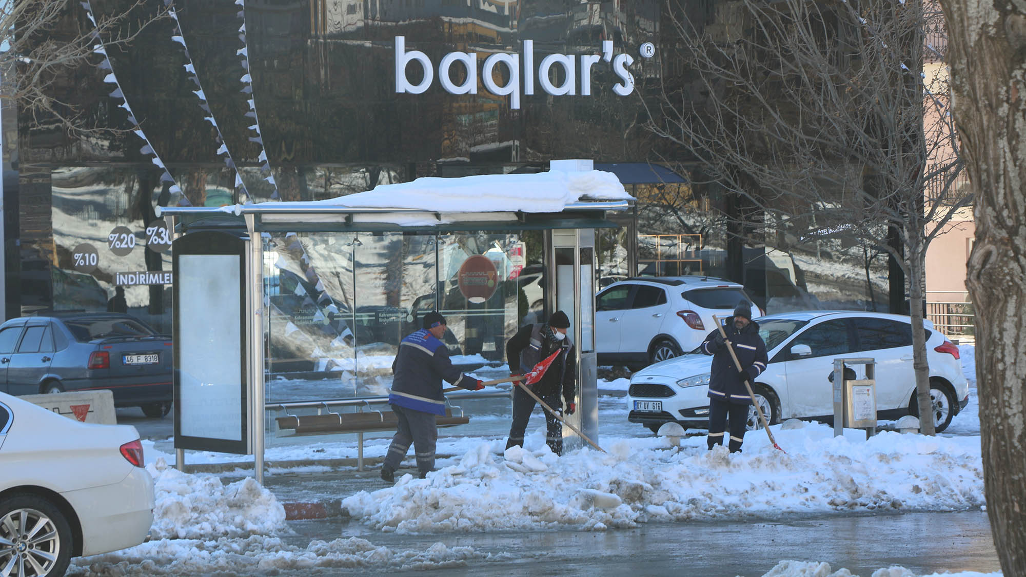 Kentin 11 ilçesinde 210 araç ve 400’nün üzerinde personelle kış şartlarıyla mücadele eden Büyükşehir Belediyesi ekipleri; ara yollar, otobüs durakları, yaya geçitleri, hastane ve yürüyüş yollarında da temizlik çalışması gerçekleştiriyor.
