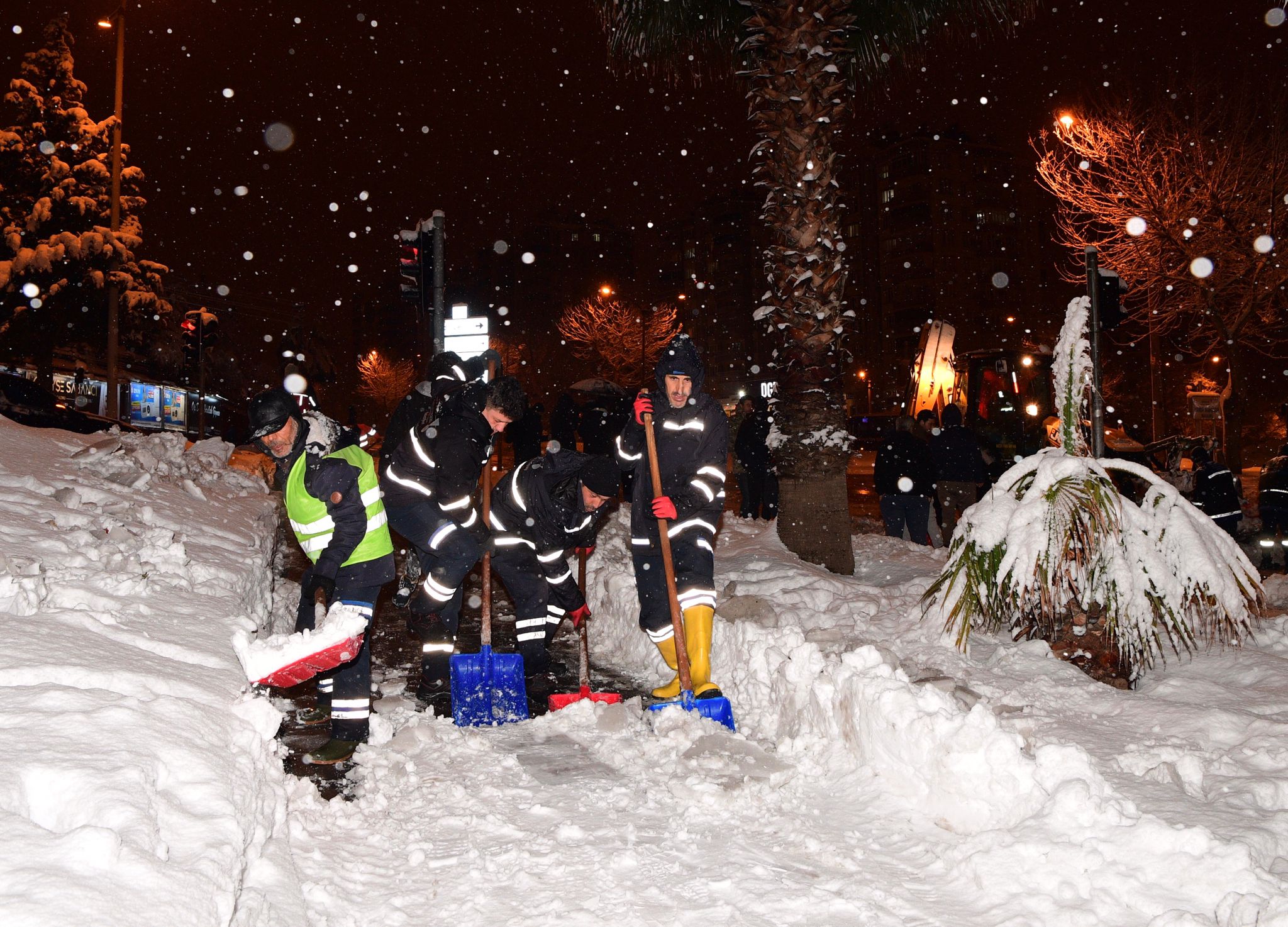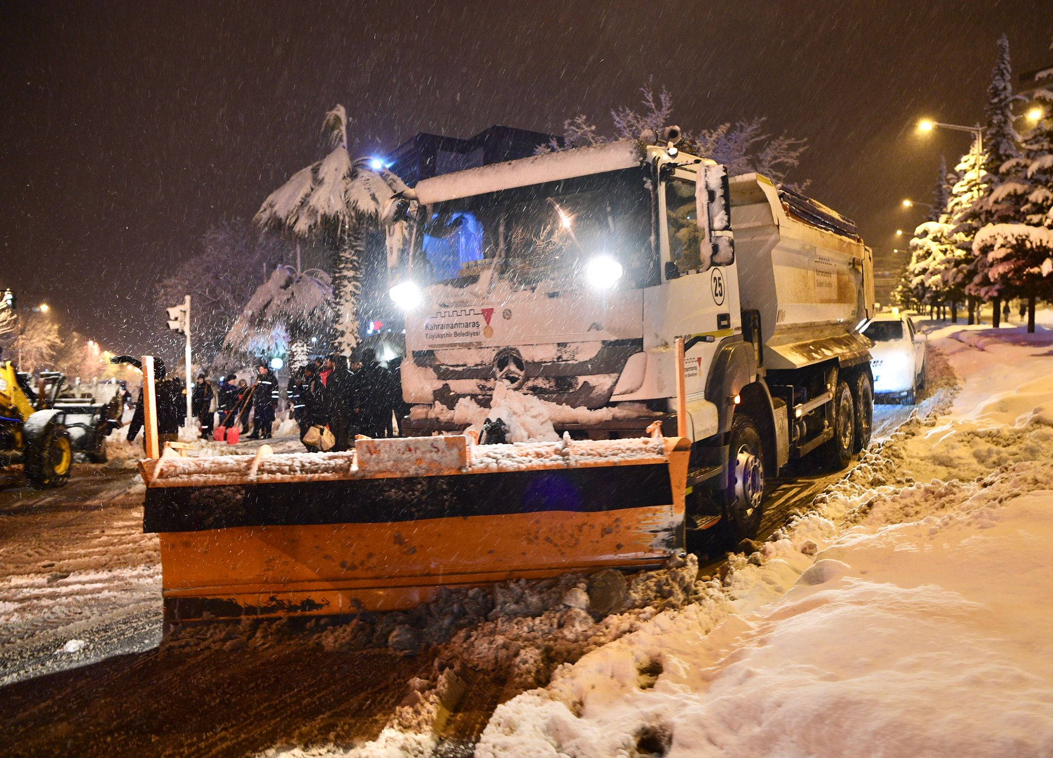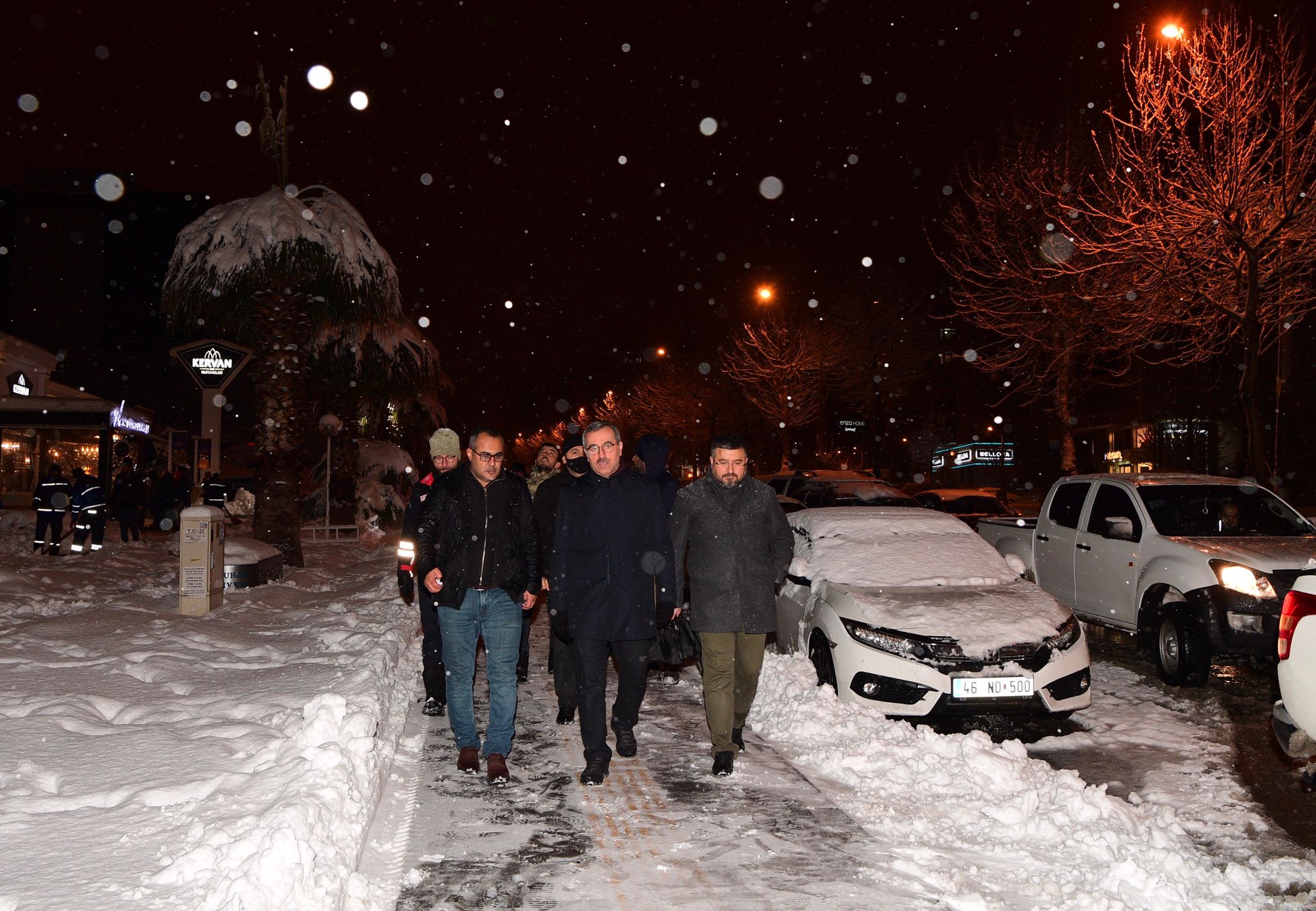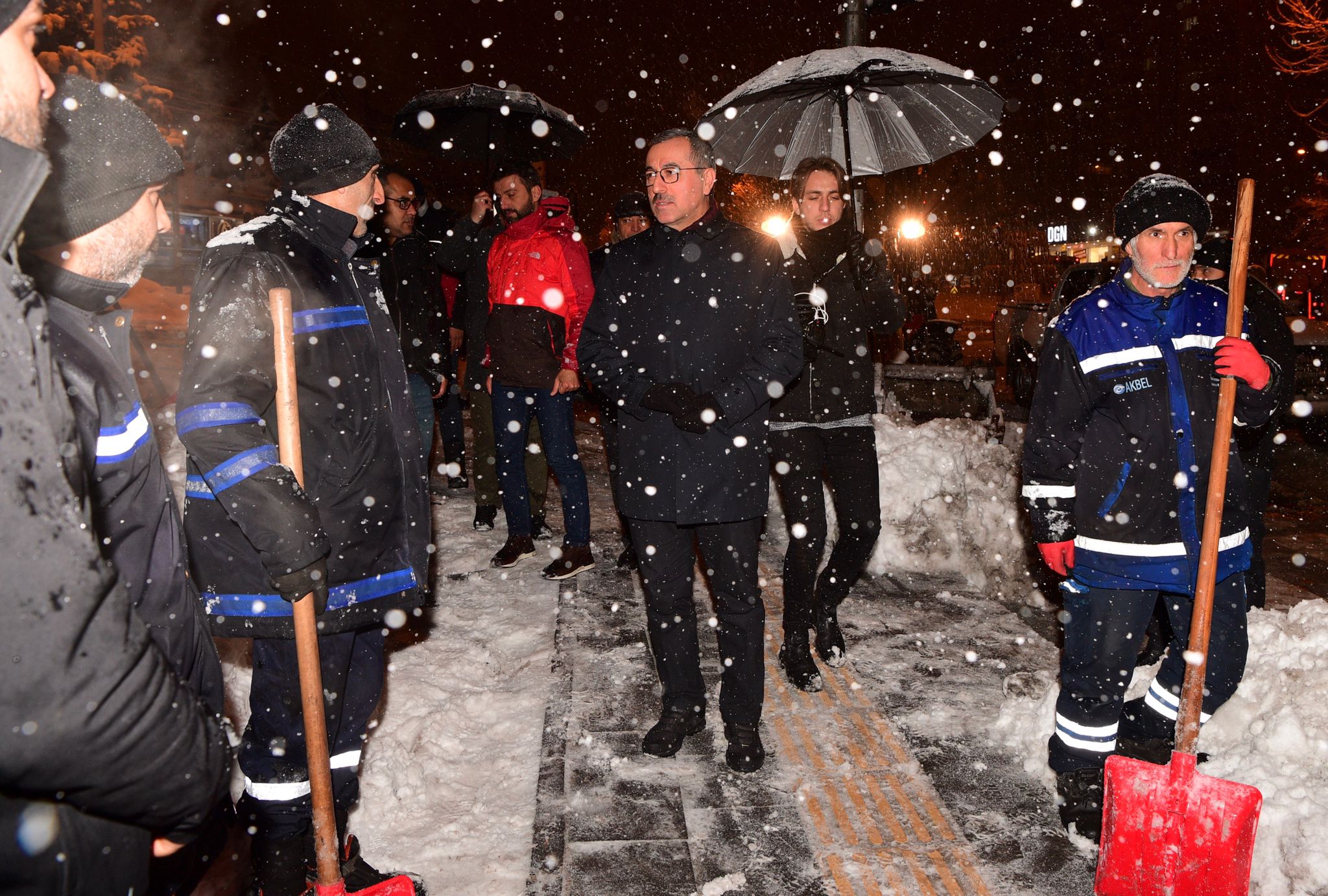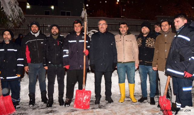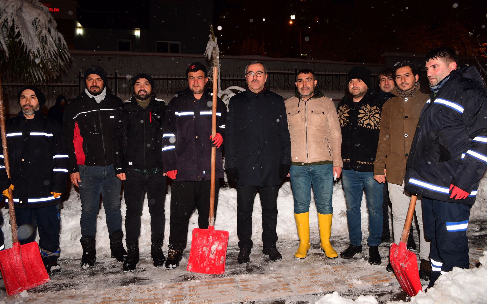 Büyükşehir Belediye Başkanı Hayrettin Güngör, açıklamalarının ardından karla mücadele ekipleriyle bir araya geldi.