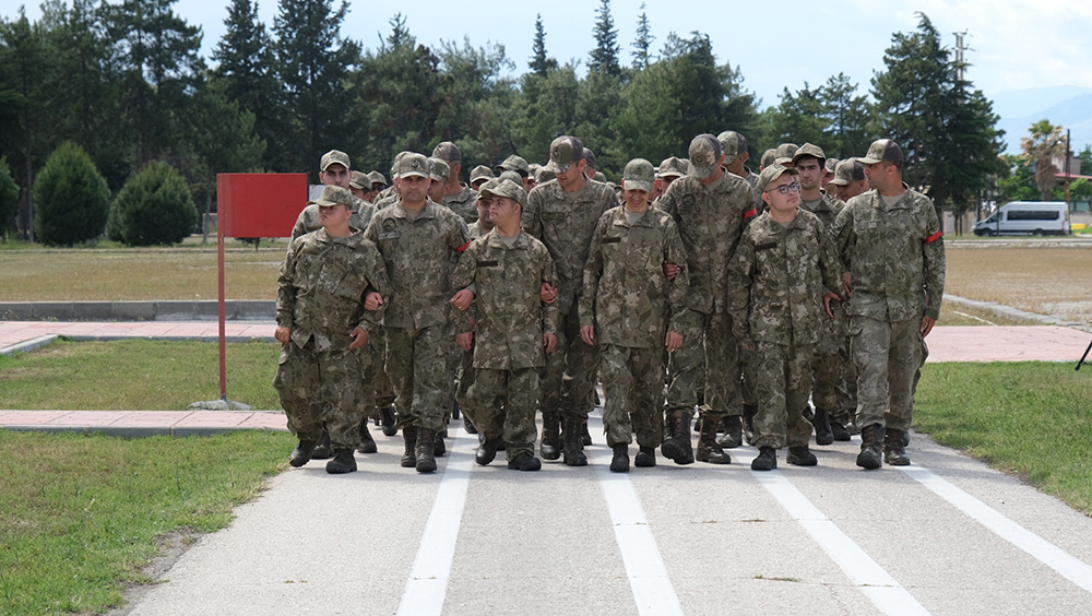 Etkinliğin ikinci günü ise 2. Zırhlı Tugay Komutanlığı’nda düzenlenen temsili asker terhis töreniyle devam etti. Asker üniformaları giyen downsendromluöğrenciler, askerlerin eşliğinde yemin etti.