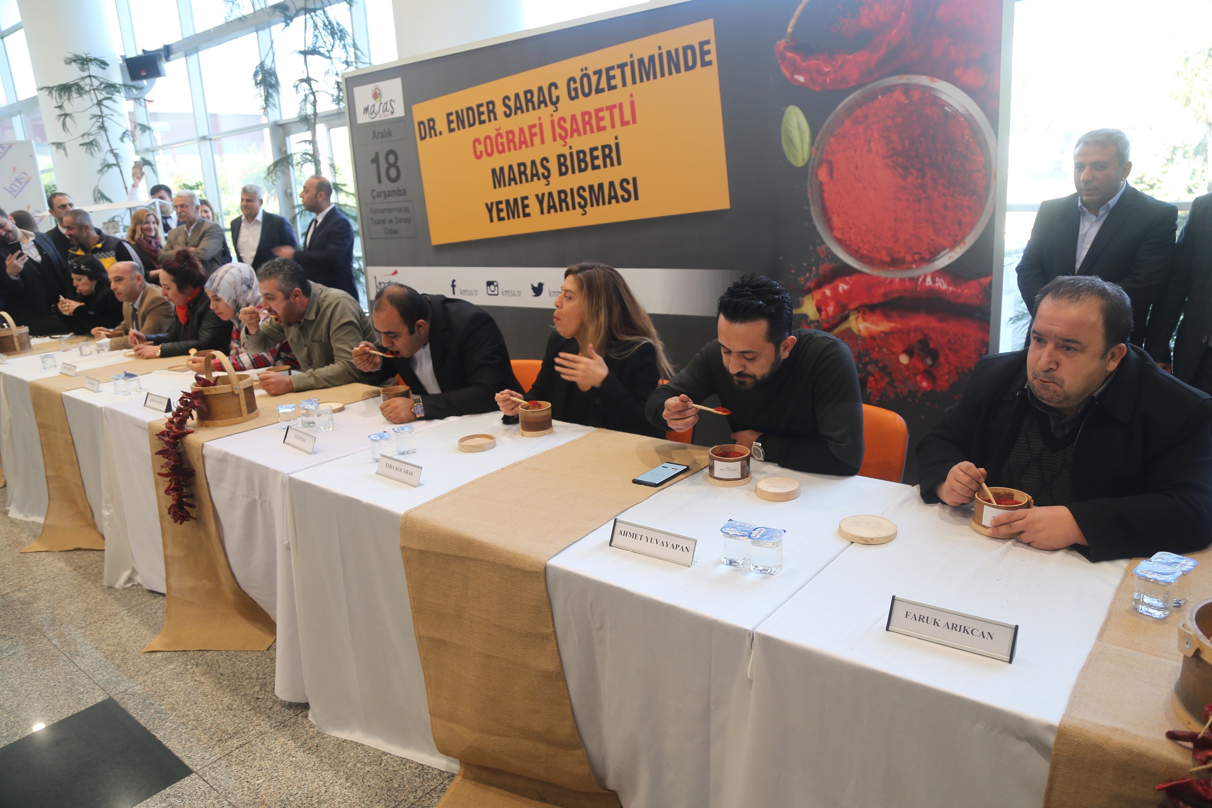 Yüksek miktarda antioksidan içeren tirşik çorbasından cips gibi yenen tarhanaya, kelle paçadan sumak ekşisine kadar damaklara destan yazan kahramanmaraş lezzetleri Kahramanmaraş Ticaret ve Sanayi Odası tarafından düzenlenen ‘Sektörel Eşleşmeler’ programı ile görücüye çıktı. Doğal tıp alanında yaptığı çalışmalar ile tanınan ünlü beslenme ve diyet uzmanı Dr. Ender Saraç’ın katılımıyla gerçekleşen etkinlik, birbirinden lezzetli görüntülere de sahne oldu. Ayrıca etkinlik kapsamında maraş acı pul biberi yeme yarışması da düzenlendi. Noter huzurunda gerçekleşen yarışmada 120 saniye içerisinde 45 gram maraş acı pul biberi yiyerek birinci olan Adem Mağralı, altından yapılan biber şeklindeki yaka iğnesinin de sahibi oldu.