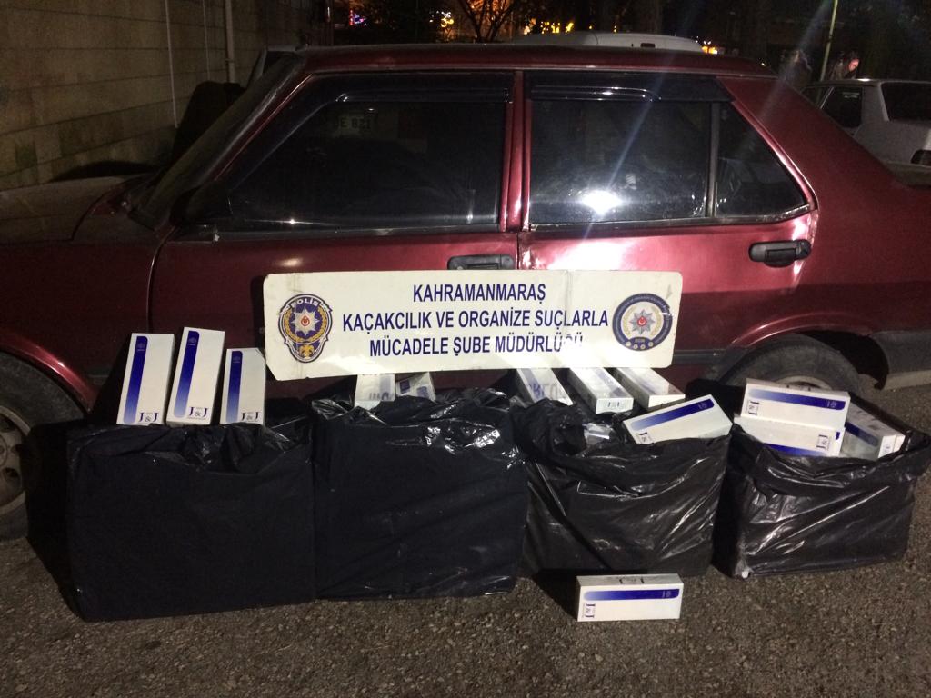 Yine Gaziantep’ten Kahramanmaraş'a gelen 02 Plakalı araca Gaziantep yolunda operasyon yapıldı. Araçta yapılan aramada bin 500 paket gümrük kaçağı sigara ele geçirildi. Olayla alakalı 2 şahıs yakalandı.
