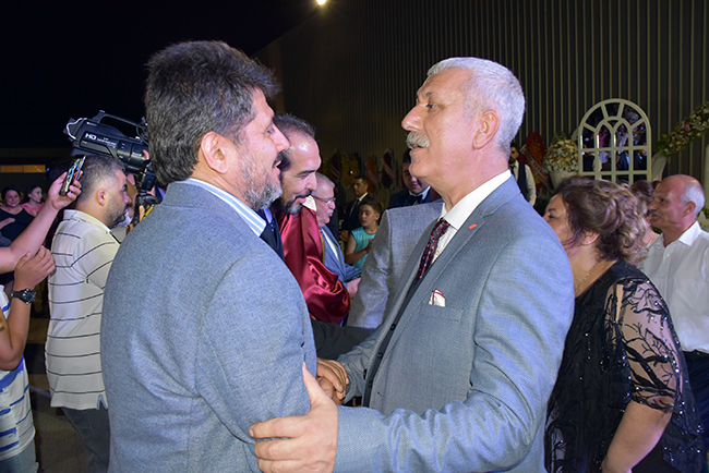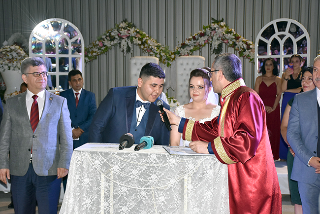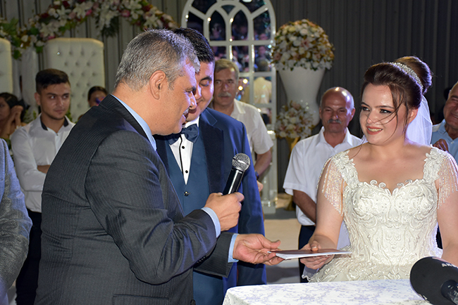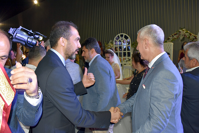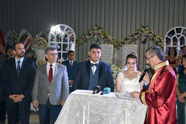 ŞENGÜL: DEMOKRASİNİN GEREĞİYDİCHP İl Başkanı Esat Şengül, düğün tarihinin 23 Haziran olduğunu ancak İstanbul seçimi nedeniyle ertelemek zorunda kaldıklarını ifade ederek daha geniş bir zaman diliminde büyük bir kalabalık içinde düğünlerini yapmaktan mutlu olduklarını söyledi. Davetlilere katılımlarından dolayı teşekkür eden Şengül, şöyle konuştu: “Bu siyasete benzemiyor, farklı bir şey. İçim kıpır kıpır. İlk oğlumu evlendiriyorum. Burada AKP'li milletvekilleri var, MHP'li milletvekilleri var. İYİ Parti İl Başkanı ve yöneticileri var. Adalet ve Kalkınma Partisi'nin değerli il başkanı ve yönetim kurulu üyeleri var. Bunlar demokrasinin gereği olan şeyler. Hatta Türkoğlu, Dulkadiroğlu, Onikişubat ve Büyükşehir Belediye Başkanımız burada. Kısacası bugün ben çok mutluyum. Kelimelerle ifade edilmeyecek kadar heyecanlıyım.”