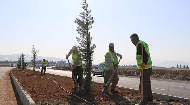 Büyükşehir Belediyesi yol yapım çalışmalarının tamamlandığı arterlerde ağaç dikim ve peyzaj çalışmalarını aralıksız sürdürüyor. Kahramanmaraş Büyükşehir Belediyesi, kuzey Çevre yolu doğu girişinde ağaçlandırma ve peyzaj çalışmalarına başladı.Büyükşehir Belediyesi Fen İşleri Dairesi Başkanlığı Park ve Bahçeler Şube Müdürlüğü ekiplerince yürütülen çalışmalar kapsamında güzergah ağaçlandırılıyor.Ağaçlandırma Çalışmaları Devam EdiyorKonu ile ilgili olarak Park ve Bahçeler Şube Müdürlüğü’nden yapılan açıklamada, “Kuzey Çevre Yolu doğu girişi olarak bilinen bölgede Havalimanı Kavşağından Doğukent’e kadar uzanan arterde 150 adet Huş, 200 Adet Leylandi ve 20 adet Amerikan Sığılası olmak üzere 370 adet ağacın dikimi gerçekleştirildi. Şehrimizin muhtelif yerlerinde ağaçlandırma çalışmalarımız tüm hızıyla devam ediyor” ifadeleri kullanıldı.