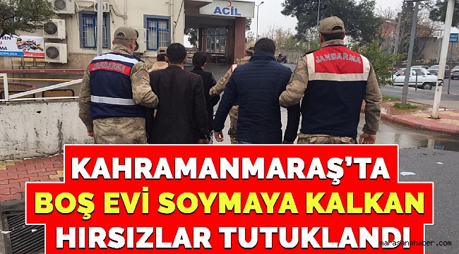 Kahramanmaraş’ta girdikleri boş bir evi soymaya kalkan hırsızlık şüphelisi 3 kişi Jandarma tarafından yakalandı. Şüphelilerden ikisi çıkarıldıkları mahkemece tutuklandı.
