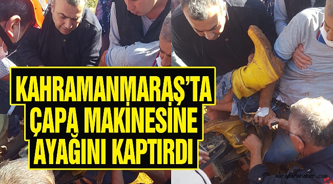 Edinilen bilgiye göre, Dulkadiroğlu İlçesi Dereli Mahallesinde Osman K. (46), tarlada çapa makinesine ayağını kaptırdı. Ayağını sıkıştığı yerden çıkaramayan Osman K., çevredeki vatandaşlardan yardım istedi. Vatandaşların ihbarı üzerine olay yerine itfaiye ve AFAD ekipleri sevk edildi. Ayağı sıkıştığı yerden çıkarılan Osman K., 112 sağlık ekiplerine hastaneye kaldırıldı.